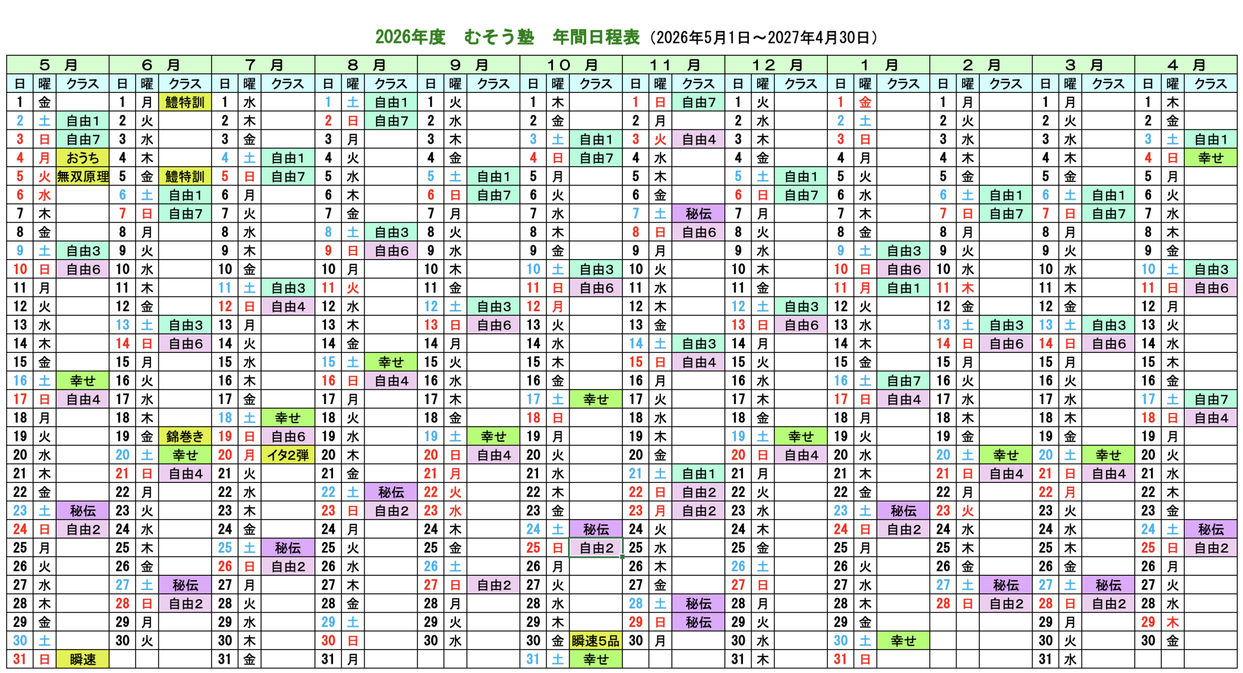 【2026年度 マクロビオティック京料理教室 むそう塾 年間日程表 2026/5〜2027/4】