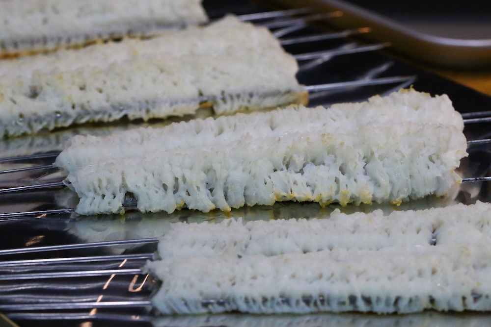 「秘伝コース」に進むと、7月に鱧の授業がありますが、ここでは見て食べるだけで実際の練習は別の講座で特訓するようになっています。