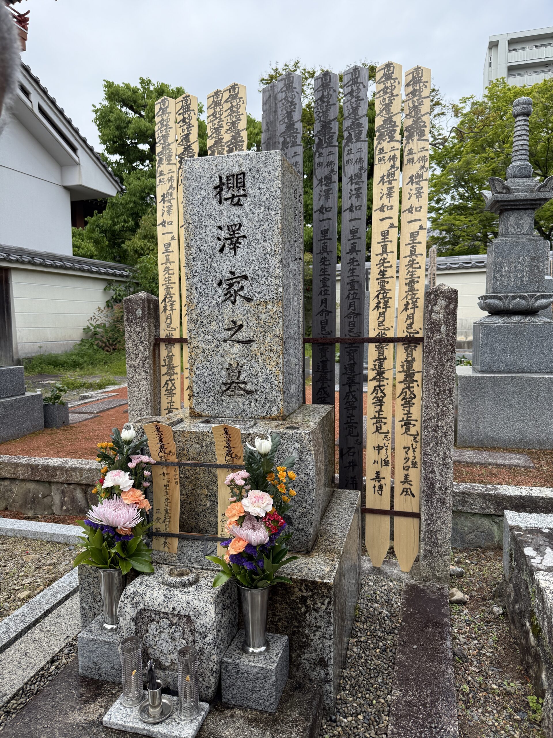 初めて桜沢先生のお墓参りに訪れた14年前には、まだ桜が少し残っていたのですが、年々その桜の量が少なくなって、今年はすべての桜が散っていました。