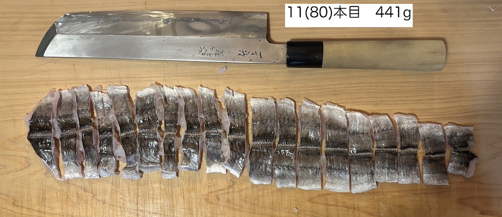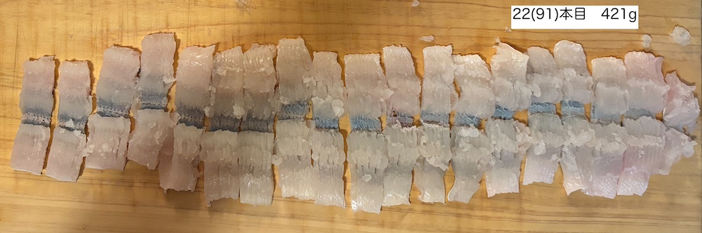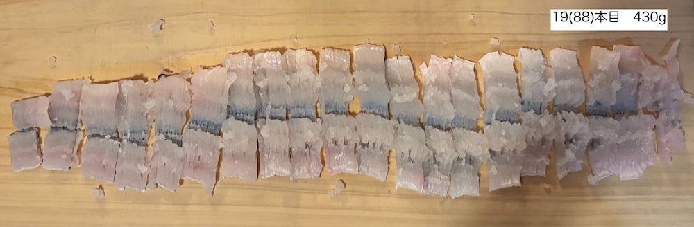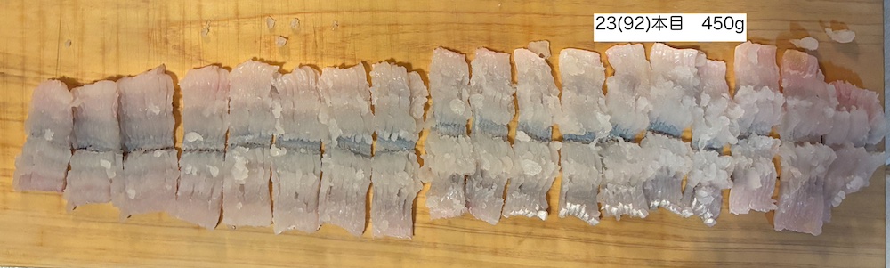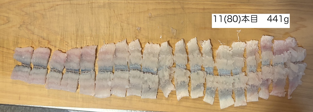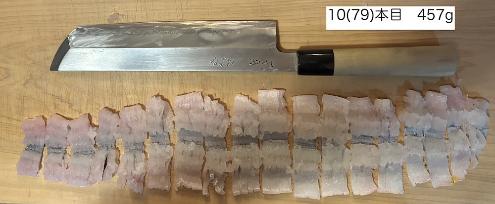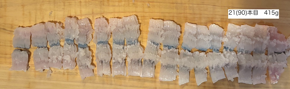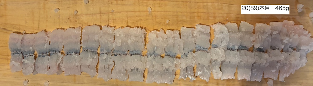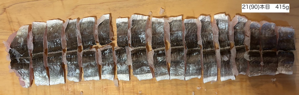 骨切りは同じ10枚なら10枚で皮幅も揃うように注意しましょう。