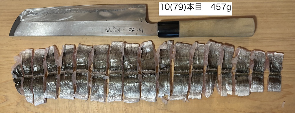 10枚落としのときは10枚目まで集中できるのですが1本つなげて骨切りするときに集中力が途切れます。 力みや脱力が交互に出てくるのです。