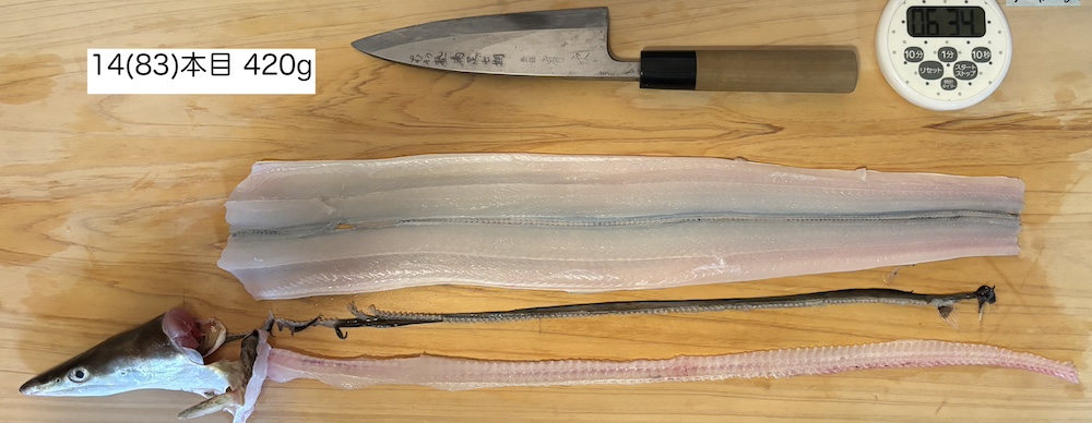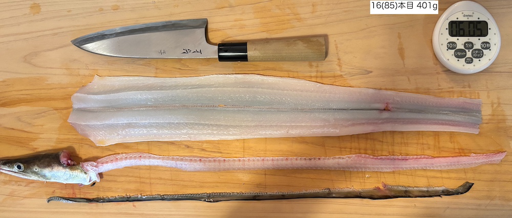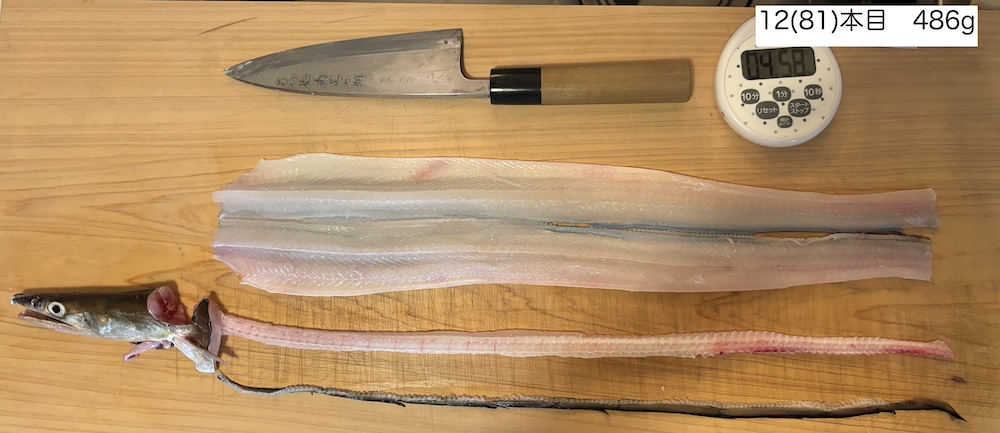 あと気になったのは鱧のぬめりと水気をもっとしっかり拭い取ってからまな板の上でさばきましょう。 刃の動きによって滑っているので時間がかかります。