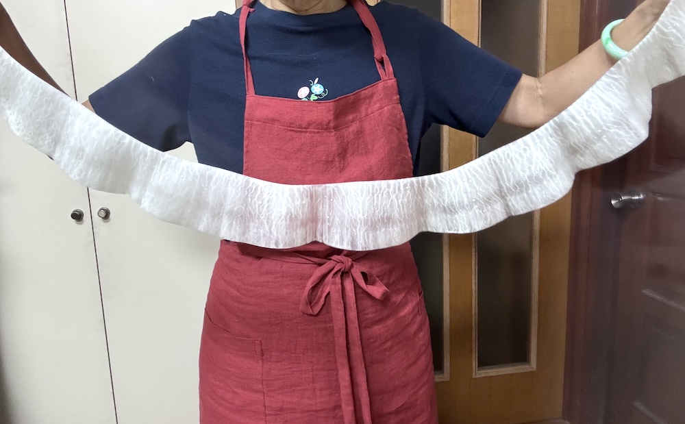 まだまだ直して頂きたいことはありますが 薄く均一に剥けるようになって真っ直ぐな芯が残り美しいウール玉ができるようになりました。