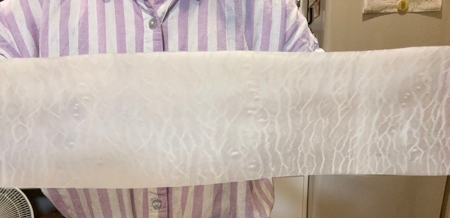左親指で引くイメージができたら ぴら〜んから横線が消えましたね。 薄く均一に剥けています。放った動画もウール玉も本当に上級者のものです。