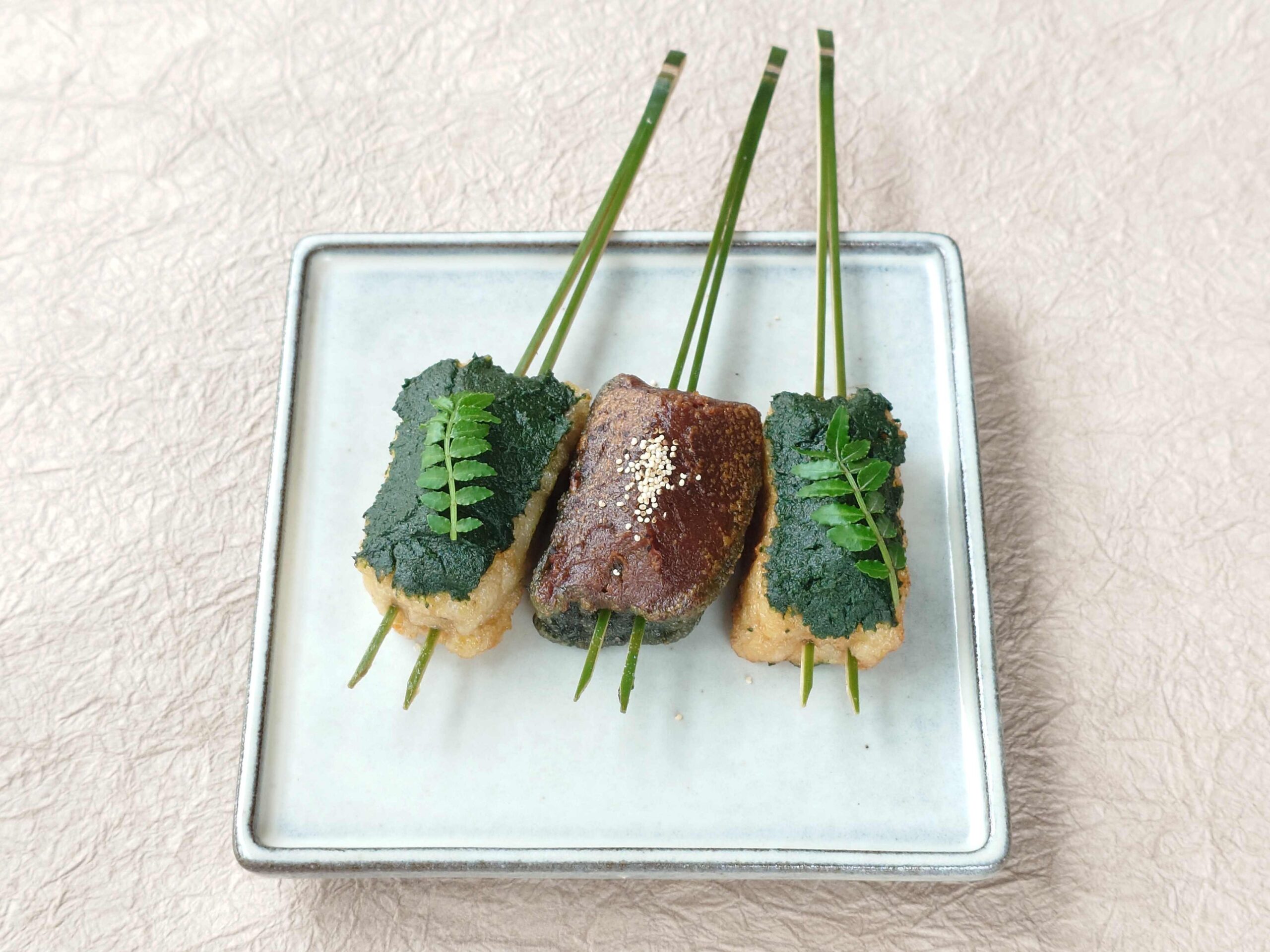美味しそうに盛れましたね。 もう3ピース追加したいところです。木の芽味噌の色合いをもっとショッキングに鮮やかにグリーン映えさせましょう。 木の芽は下4枚をちぎってから使いましょう。 合格です