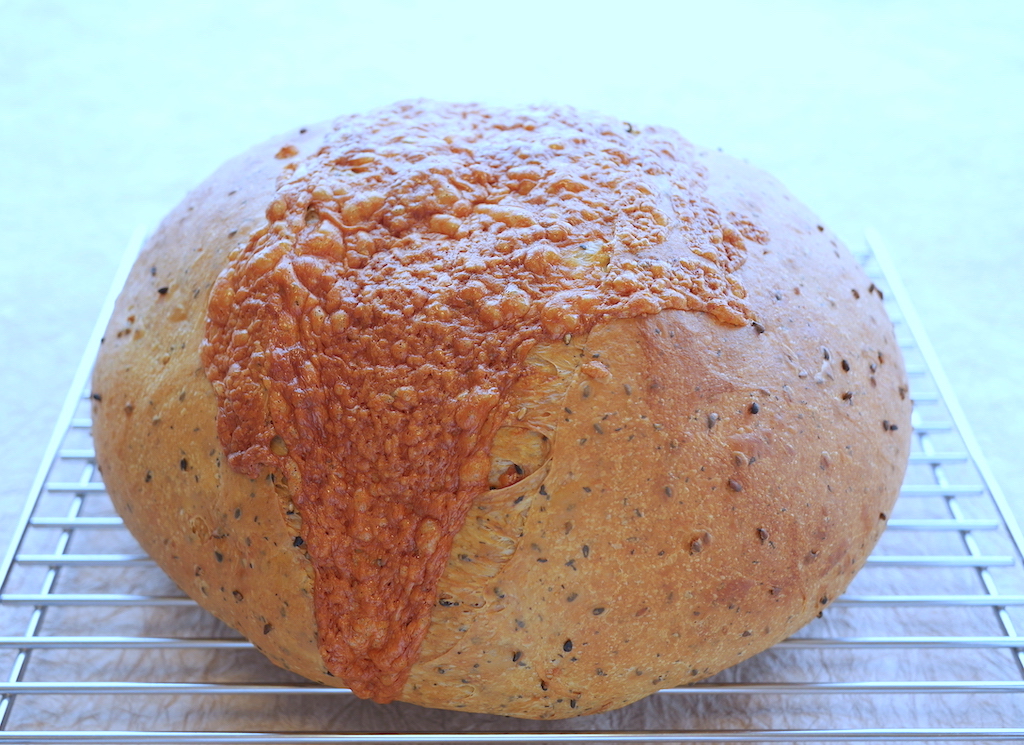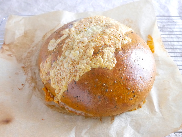ダイナミックに美味しく焼けました 釜から出すとき必ず「でっか!」って言うてしまいますよね(笑) 焼けたチーズの部分が大好きです 合格です