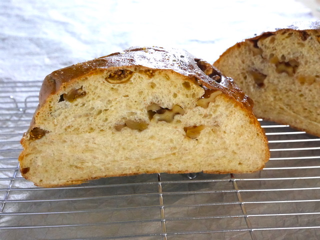いちじくと胡桃のパン よく上がっていますねぇ 上手です グルテンの具合がドンピシャです 温度もバッチリです 合格です