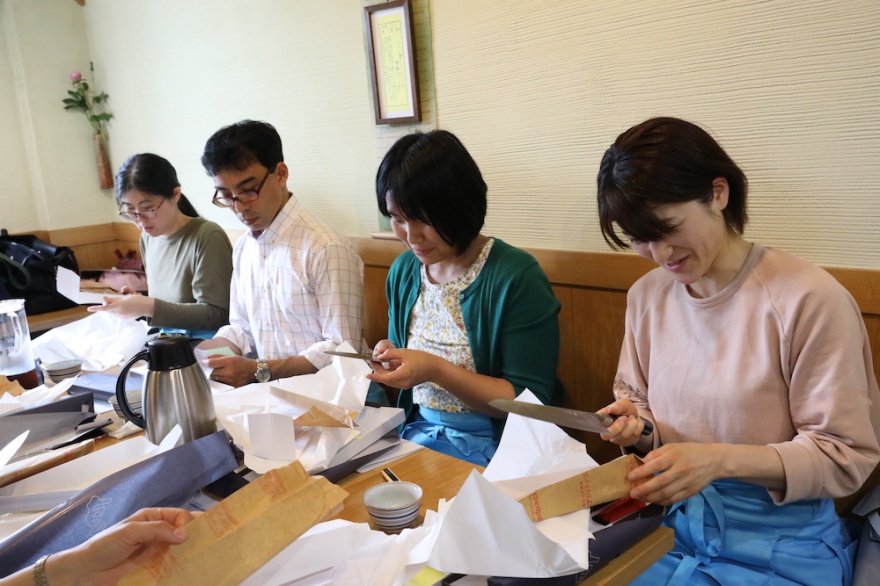 食後は座学 座談につづき上級幸せコース用の特製包丁の授与です