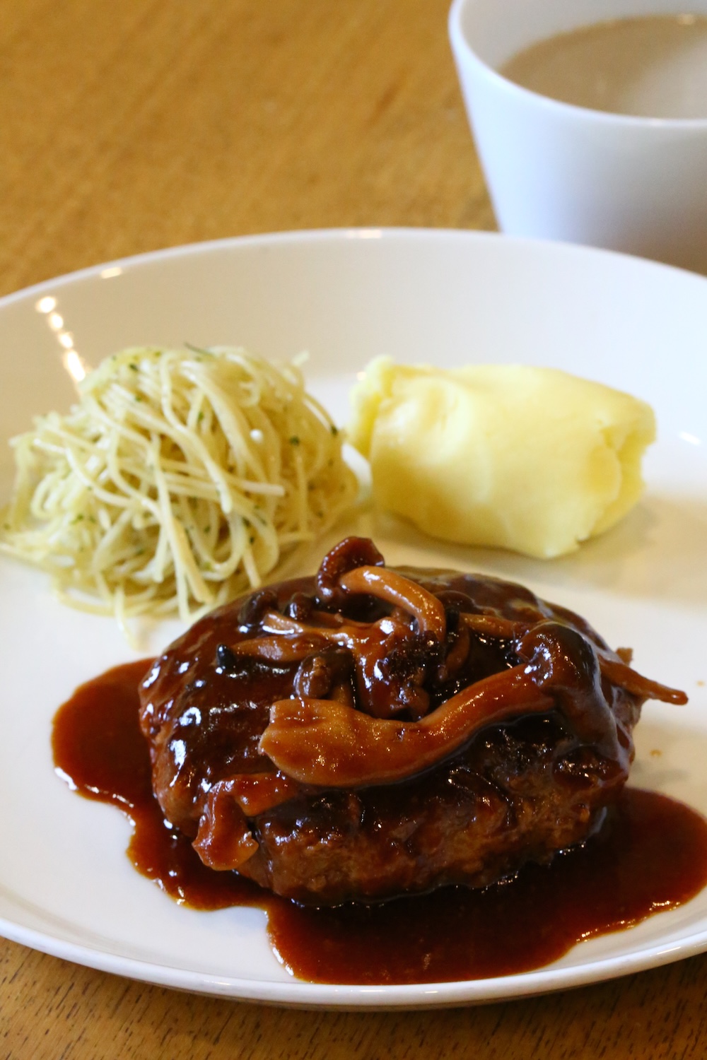 茸スープもすごく舌触り滑らかで、濃厚なのに口説くなくて、ハンバーグの毒消しもできて、最高でした。