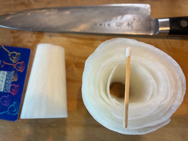 逆パイロンを直すには? 大根のてっぺんの面を見ながら剥いてください。