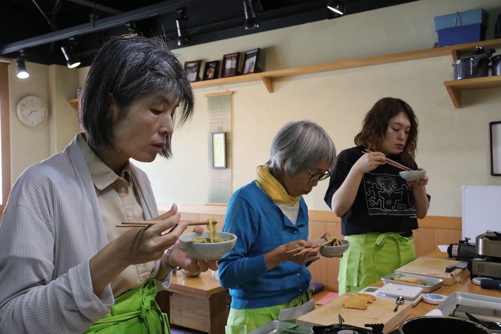お味見タイム おいしーねー! 自分の分を自分で作りましょう