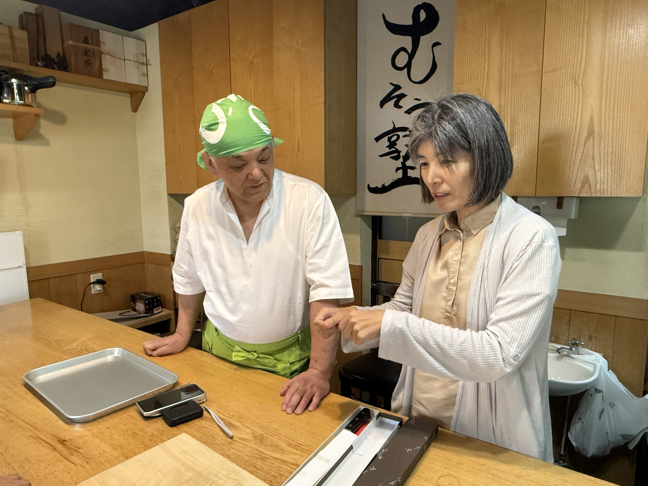 はりきって練習を始めたら、指を切ってしまいました。その後、出来なさすぎてどうなることかと思いましたが、手厚いサポートのお陰で、上達できました。美人認定にまな板まで頂けて、嬉しすぎました。ありがとうございます。