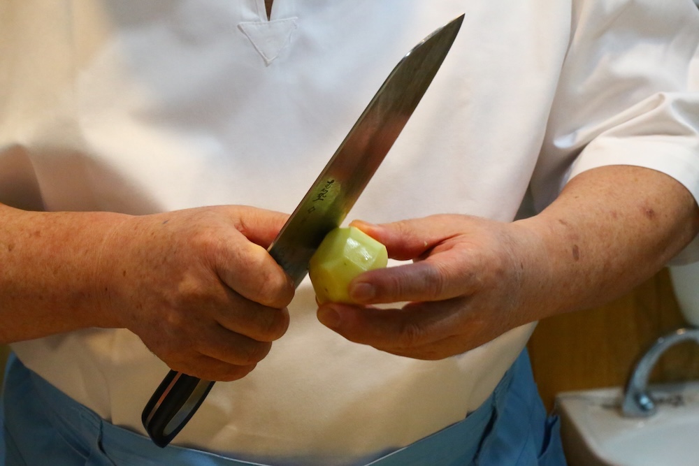 煮崩れない秘密の一つ 芋の皮むき 剥いた面がツヤっと光っているでしょう