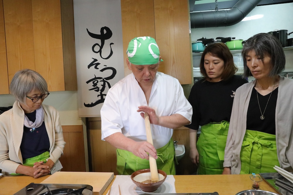 いりごまの擦り方をお教えしています