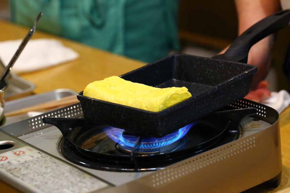 う巻きの試食です おいしいー! ふわふわ! さぁ自分の分は自分で焼きましょう