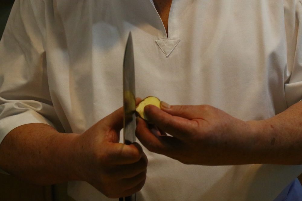まずは放課後(前)レッスンです 包丁砥ぎ 糠床の健康診断 みなさんがんばっておられます