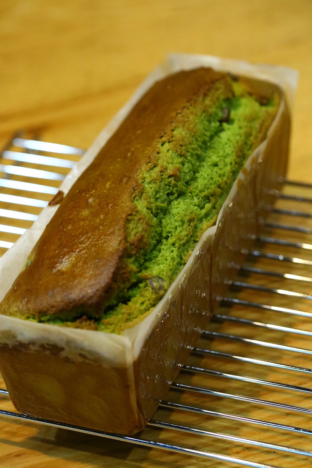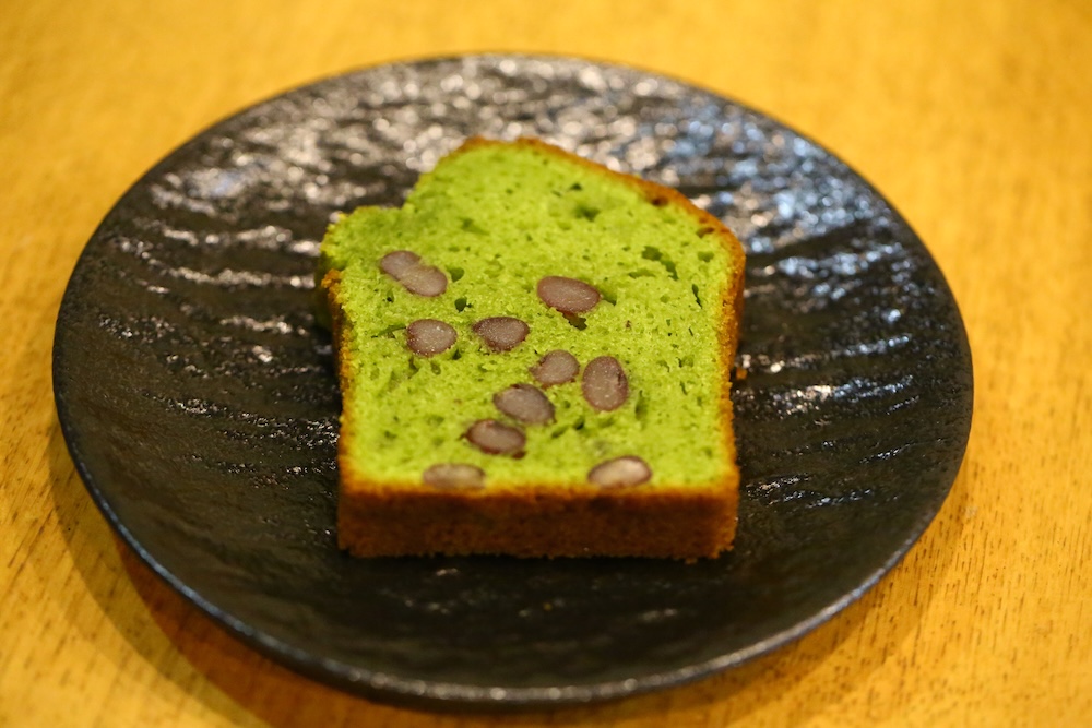 焼けました かのこ豆と抹茶のパウンドケーキです