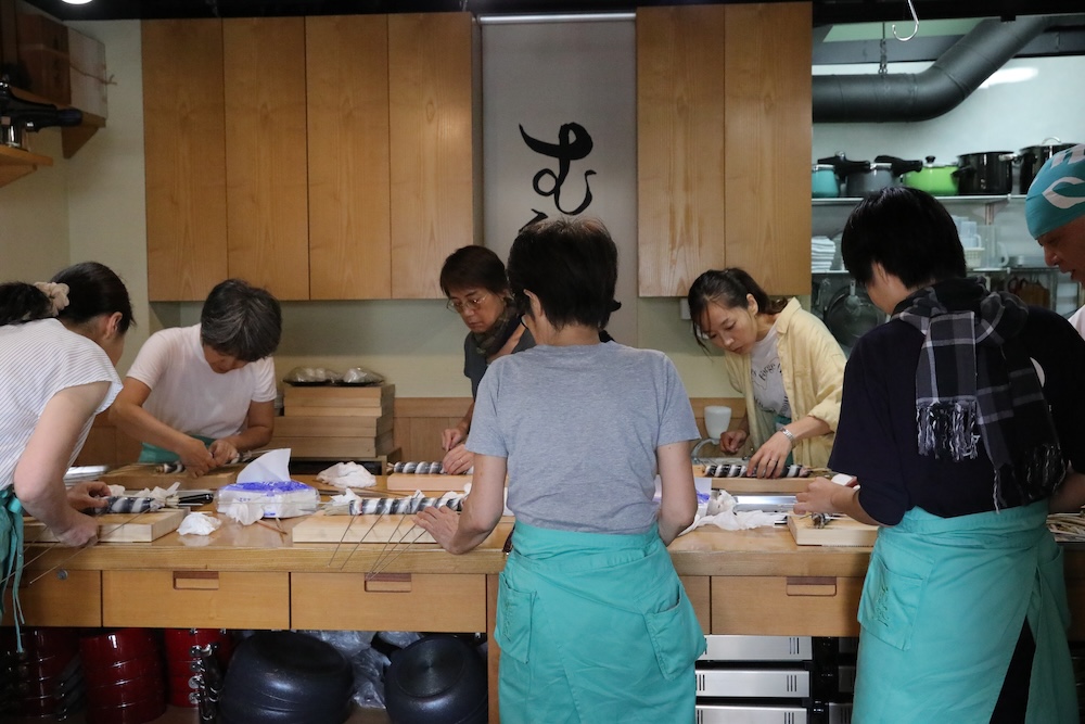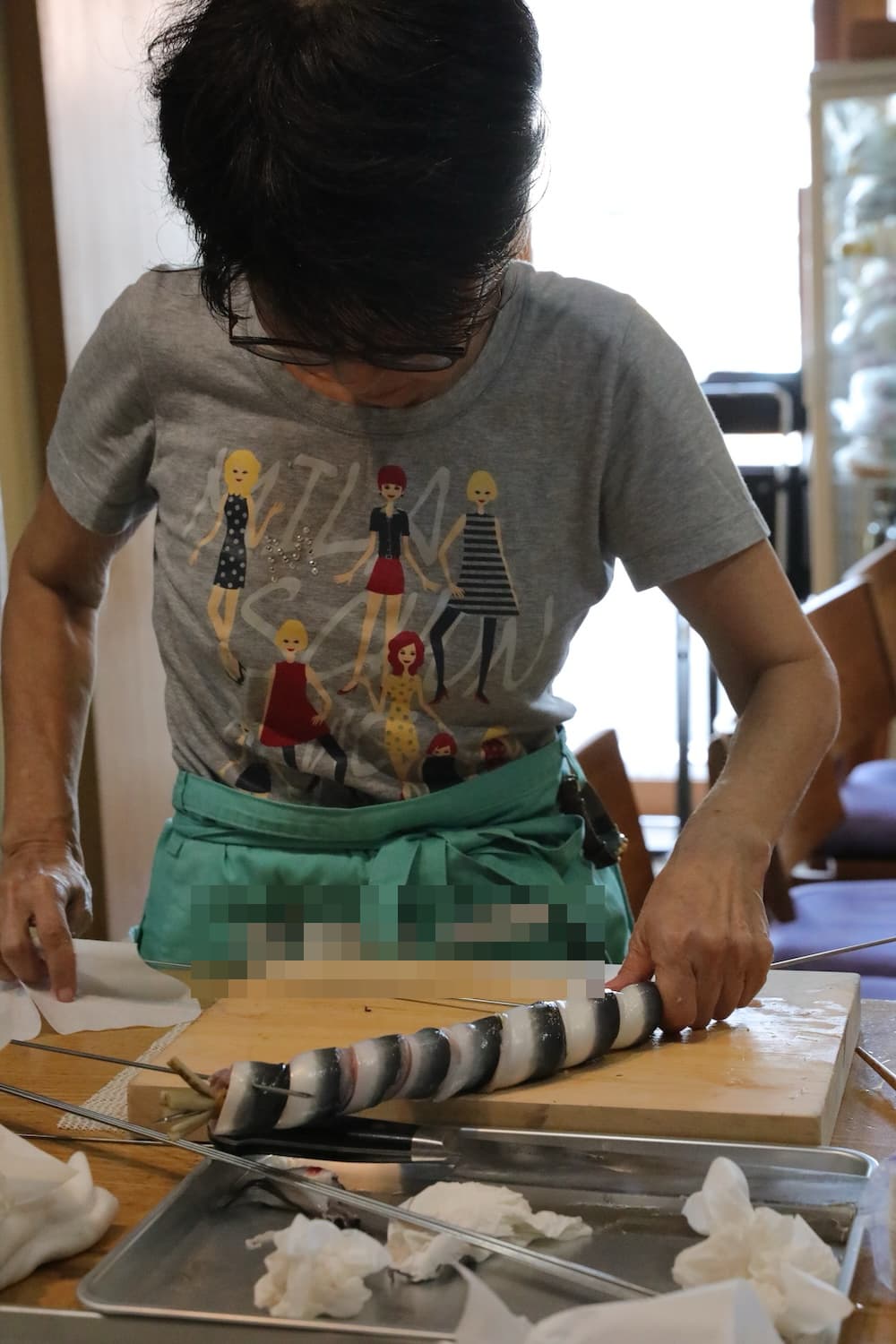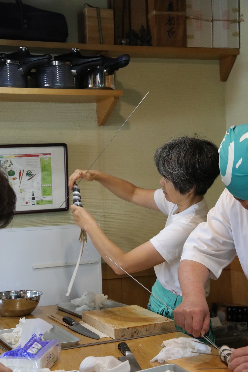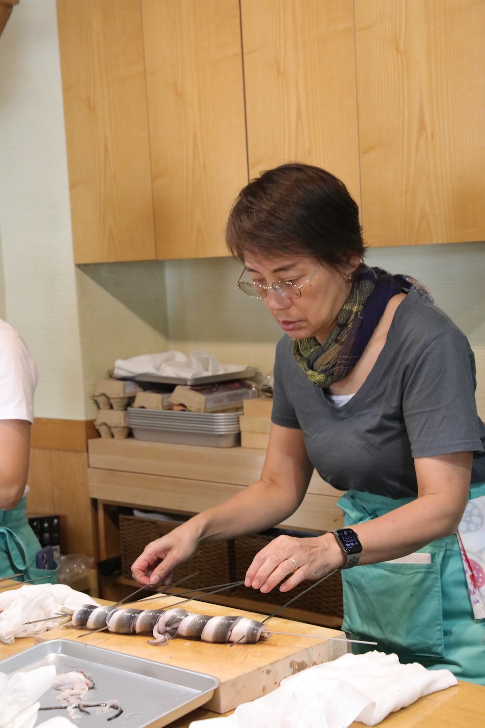 生の鰻は見るのも扱うのも初めてでしたが、ヌルヌルと格闘したり、牛蒡に巻きつけてだんだん八幡巻きの形にしていく工程は、ワクワクしました。果たして、自宅で一人でお料理できるのか…分かりませんが、挑戦してみます。いつもおせちの中で大人気の八幡巻ですが、ものすごく手間のかかるお料理だと分かり、今まで以上に大事に味わって食べようという気持ちになりました。