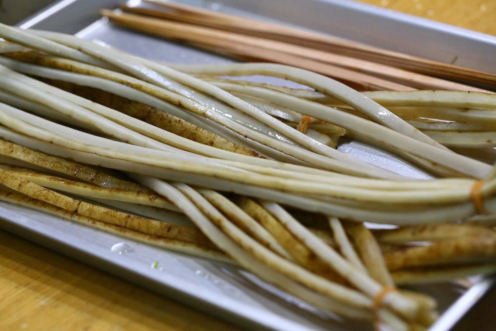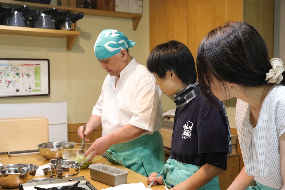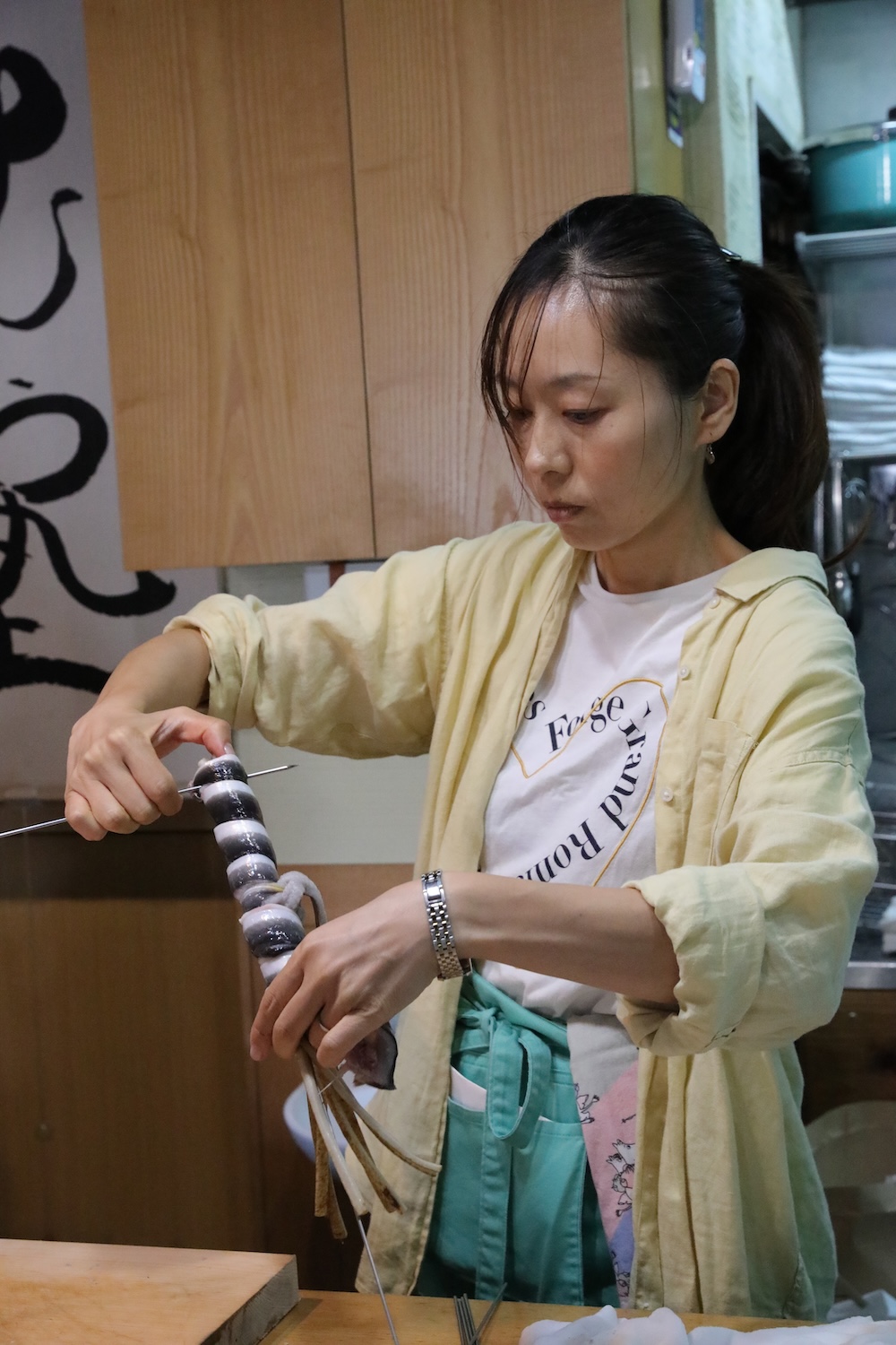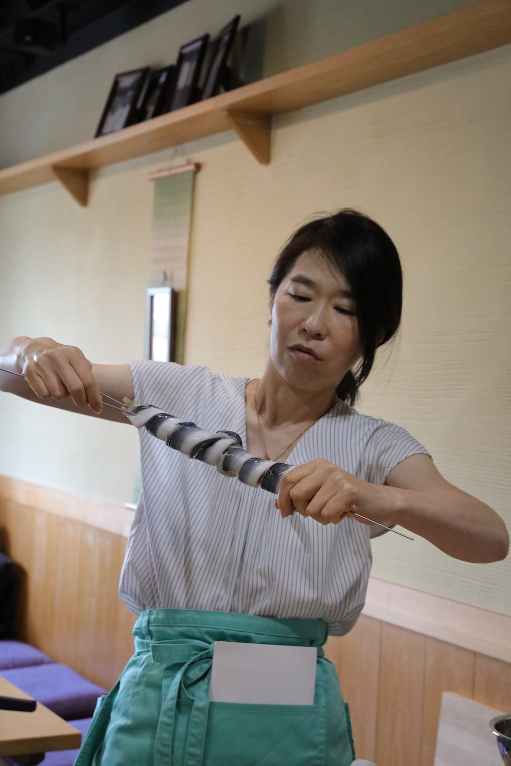 生の鰻は見るのも扱うのも初めてでしたが、ヌルヌルと格闘したり、牛蒡に巻きつけてだんだん八幡巻きの形にしていく工程は、ワクワクしました。果たして、自宅で一人でお料理できるのか…分かりませんが、挑戦してみます。いつもおせちの中で大人気の八幡巻ですが、ものすごく手間のかかるお料理だと分かり、今まで以上に大事に味わって食べようという気持ちになりました。
