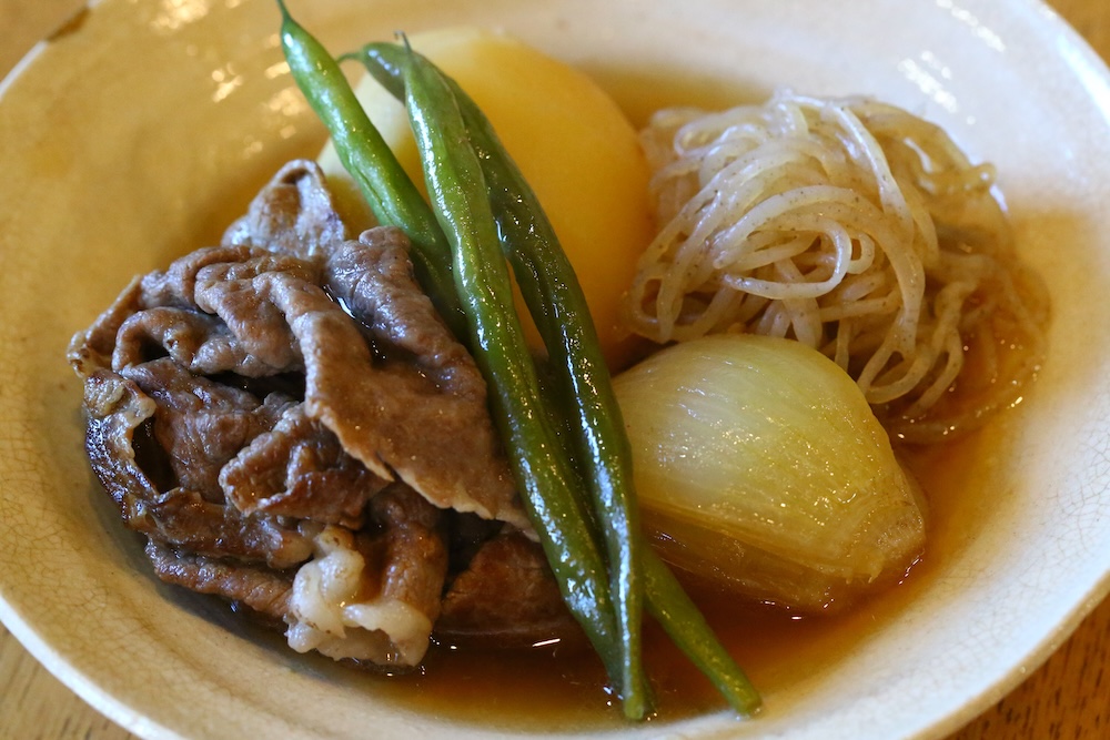 肉じゃがの盛りつけ例 よく染みています が、濁りは一切ありません