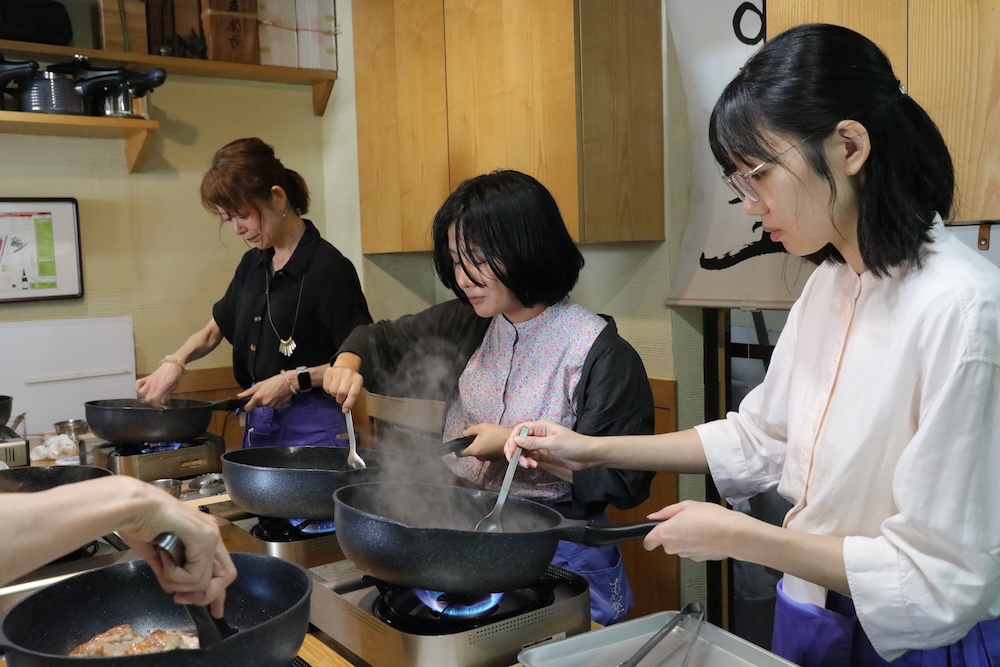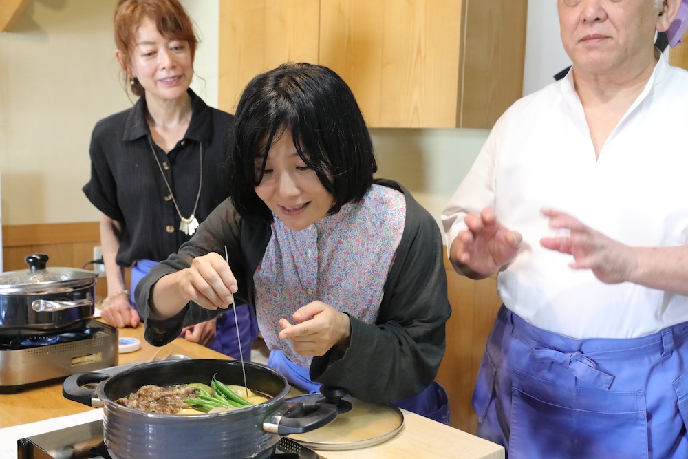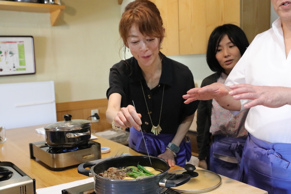 今月の満足コースは 透明でキレのある肉じゃがと地鶏の鍋てりやきをお教えしました。