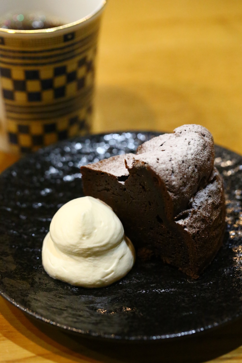 食後のコーヒータイムです ガトーショコラと塾長珈琲です