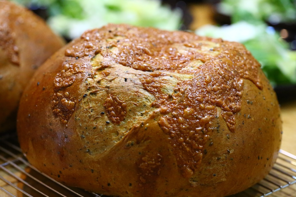 黒胡麻チーズパン 外カリカリの中ふわふわなパンです 切る前から香りがすごいのです