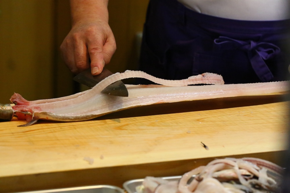 活け鱧をおろします