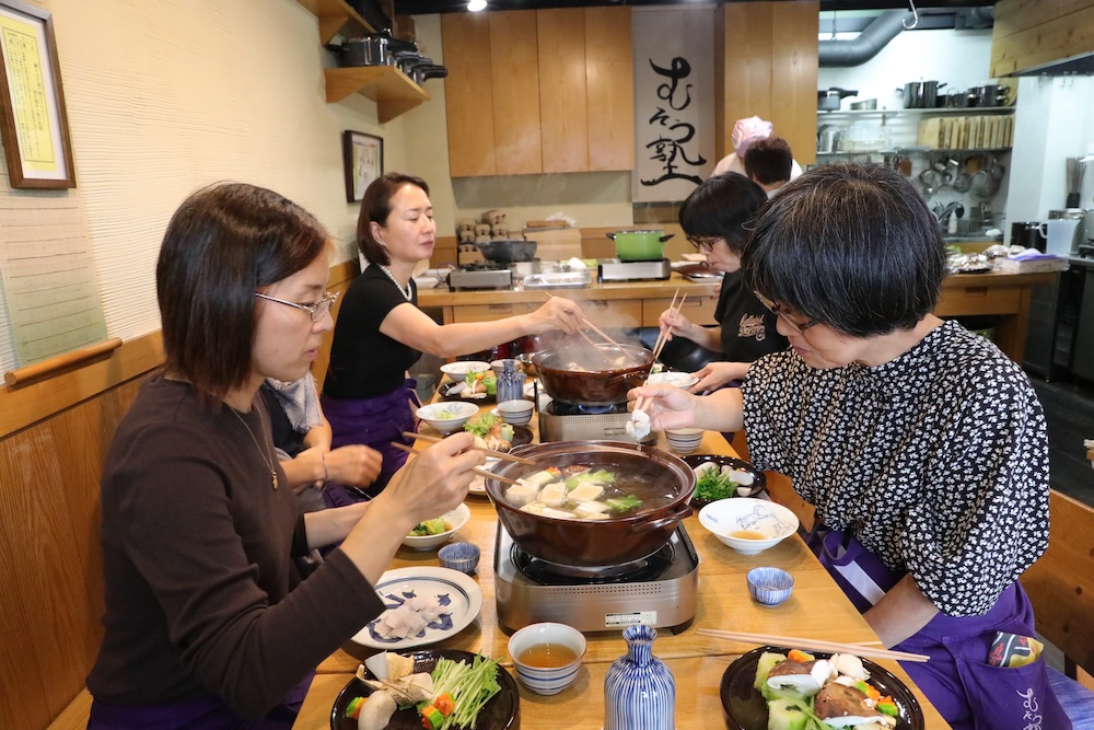 鱧しゃぶしゃぶをライブで召し上がっていただきました。