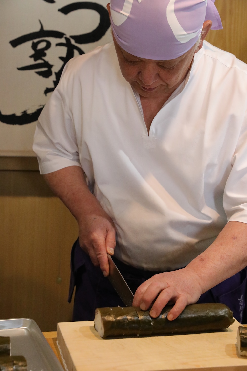 鯖寿司を切ります お昼ご飯にしましょう