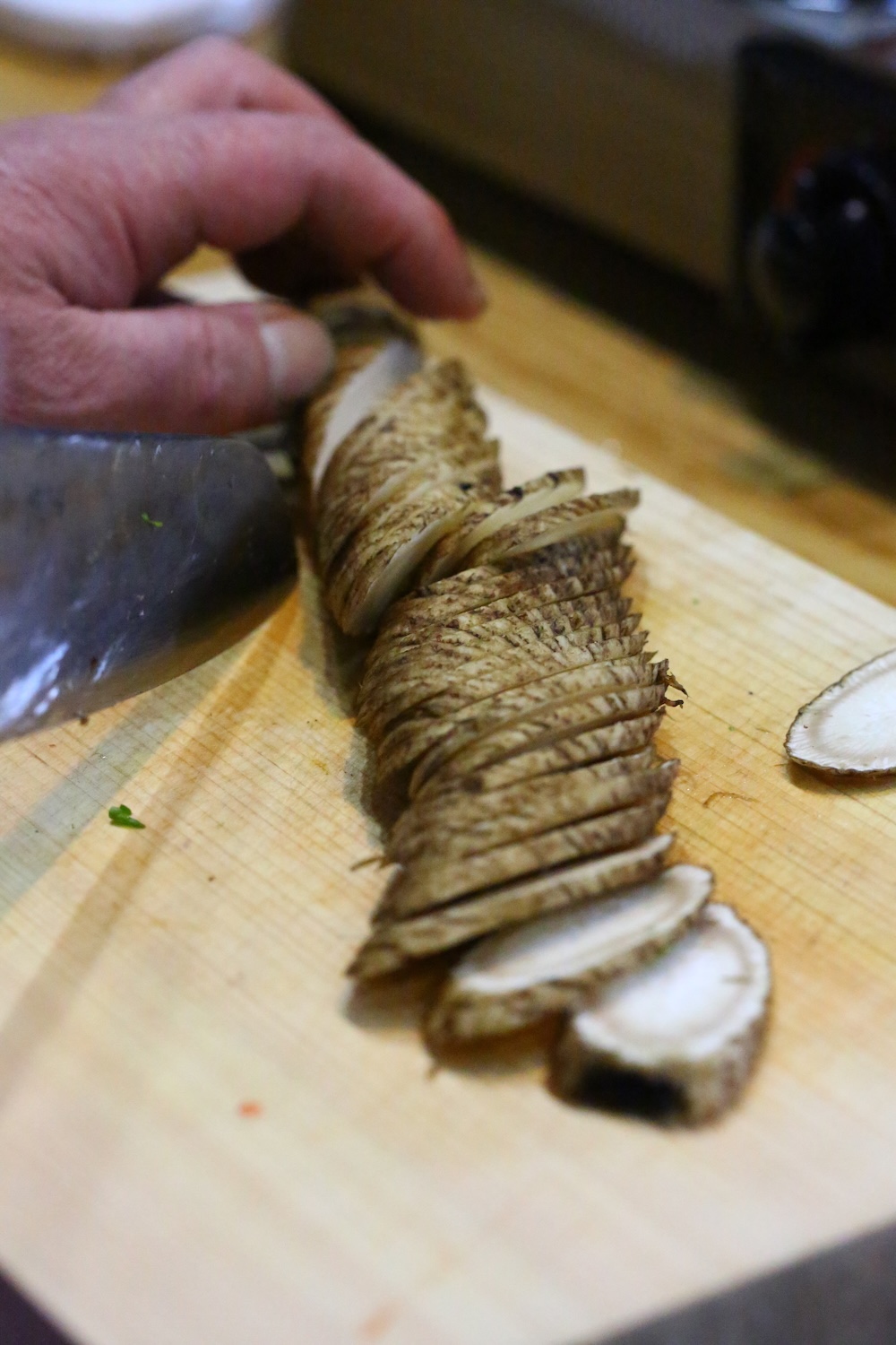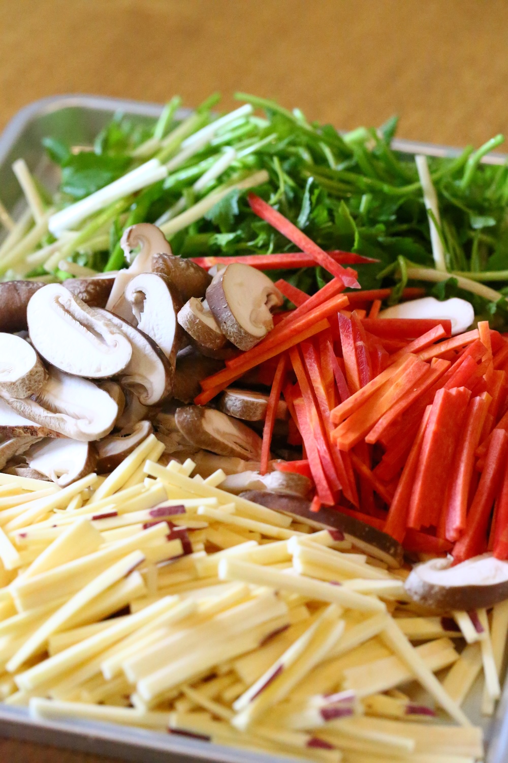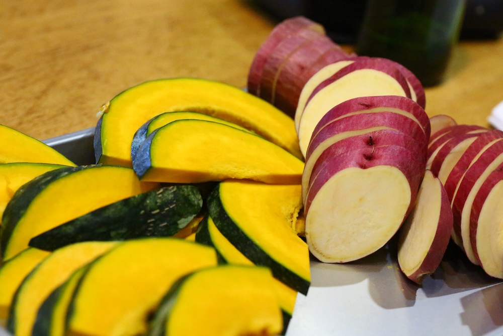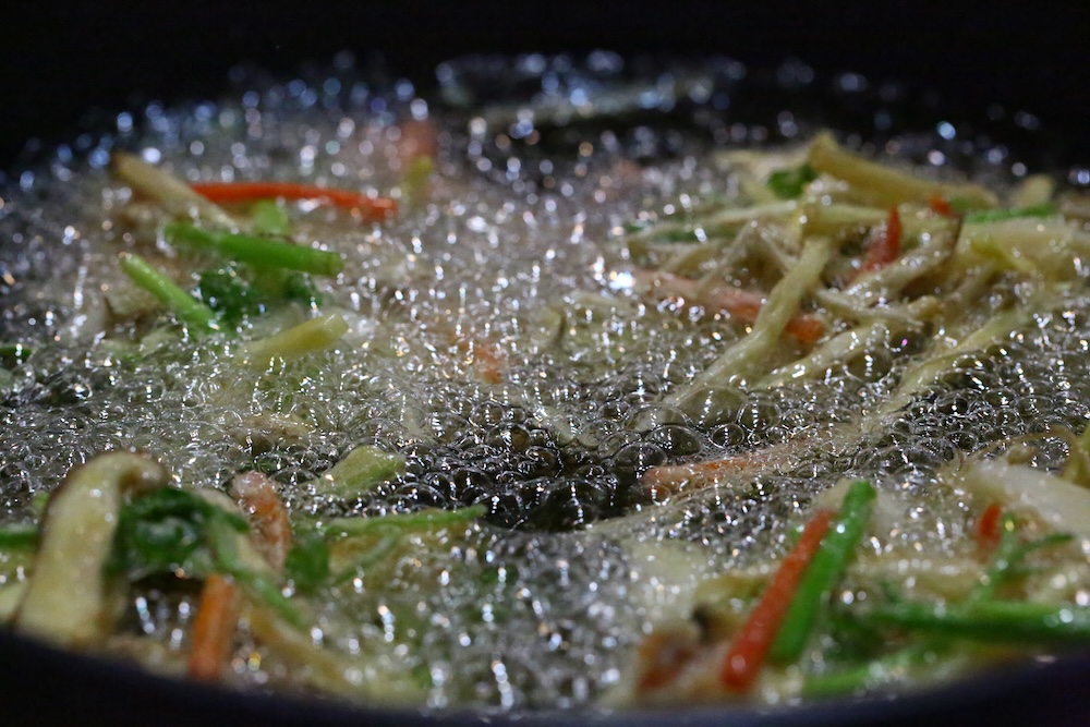 かき揚げの切り出しです テーマは火通りです 切った具のそれぞれの「水」を見れているか ここがポイントです