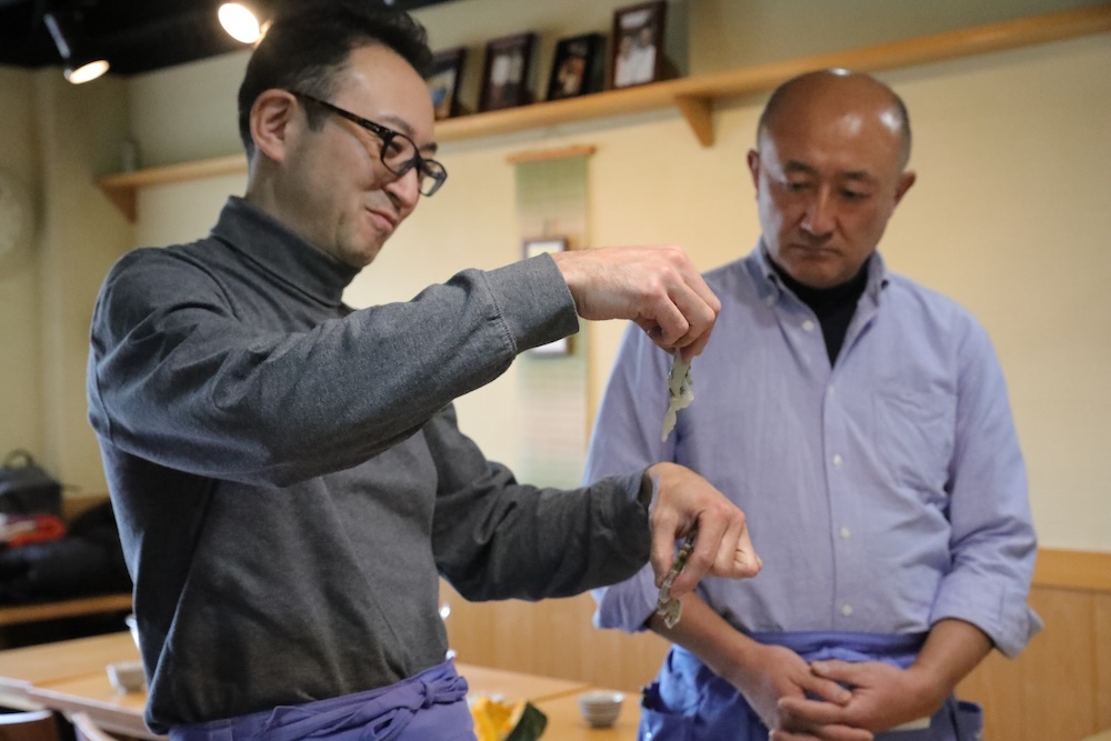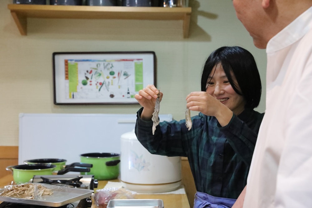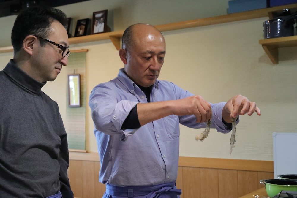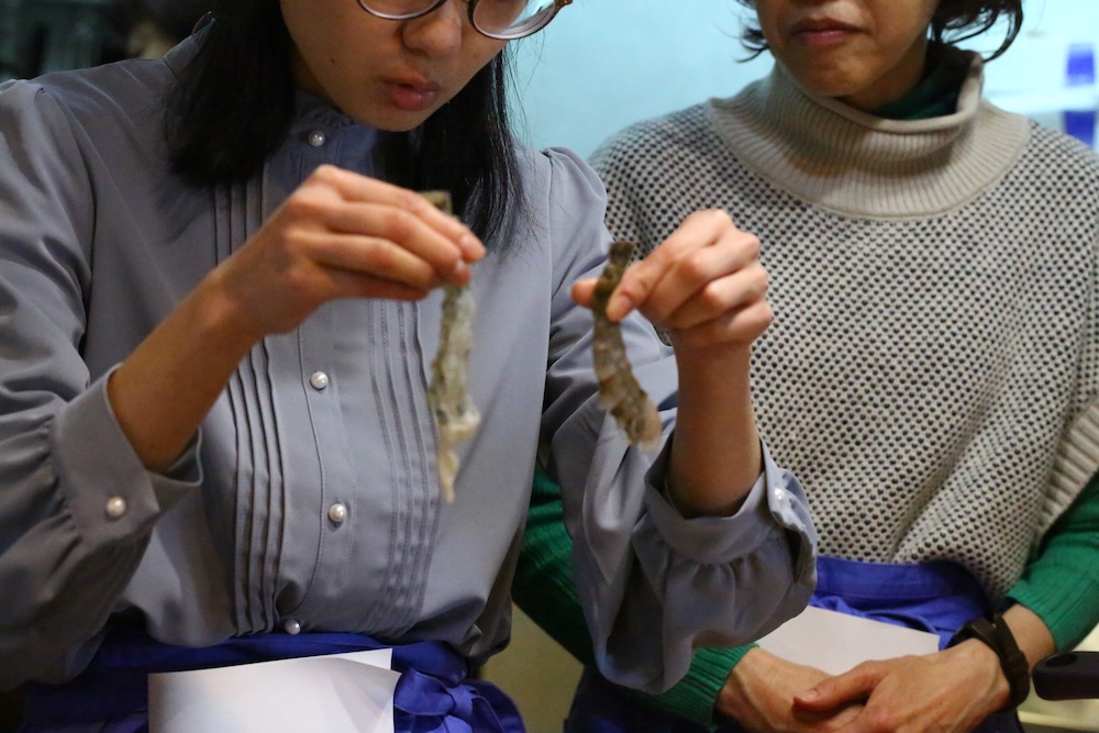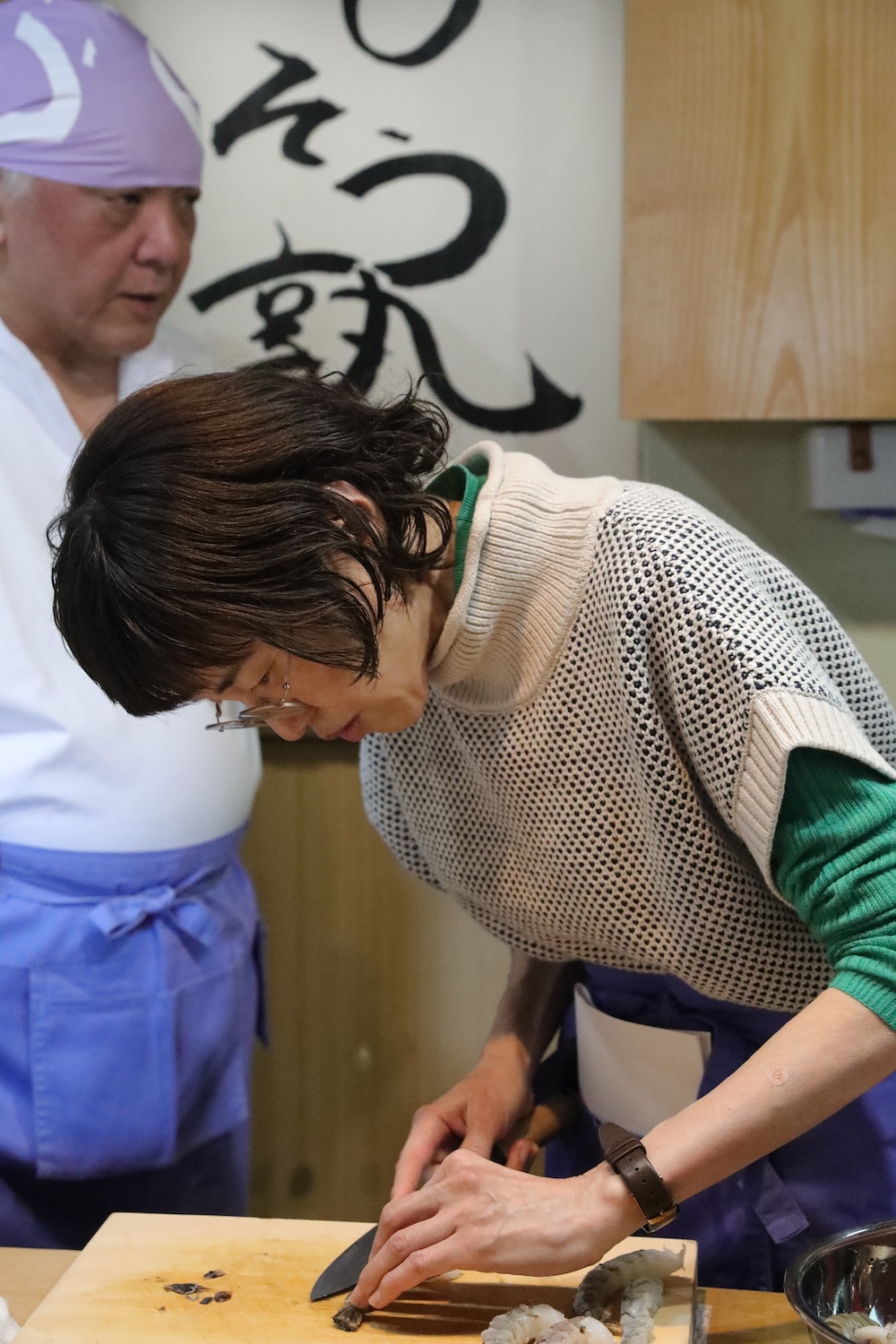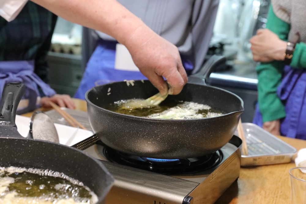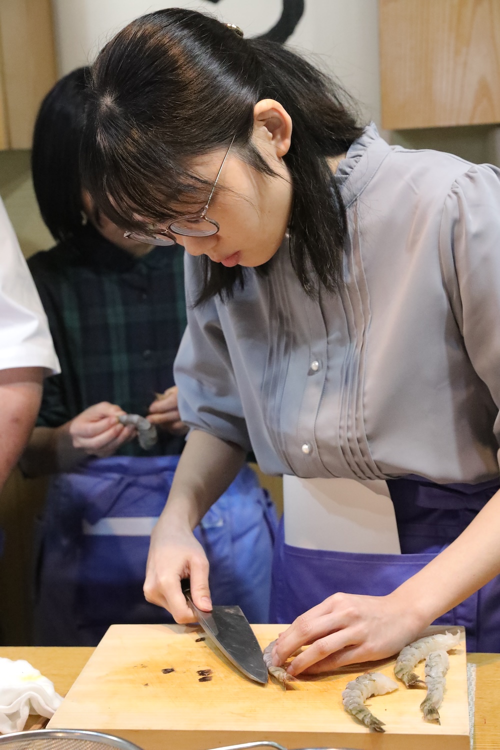 エビをまっすぐに揚げる下ごしらえをお教えしました