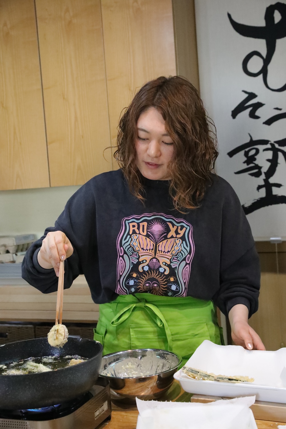 今月の幸せコースはお待ちかねの天ぷらの揚げ方をお教えしました。