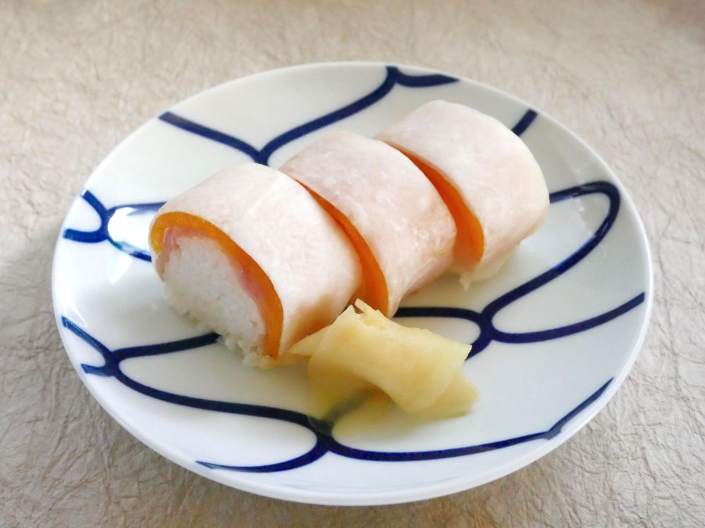 美しくできましたねぇ 鯖寿司と同じで巻たて押したてよりすこし寝かして熟れさせたほうが本来の味がでます。 それを学んでいただければOKです。 合格です