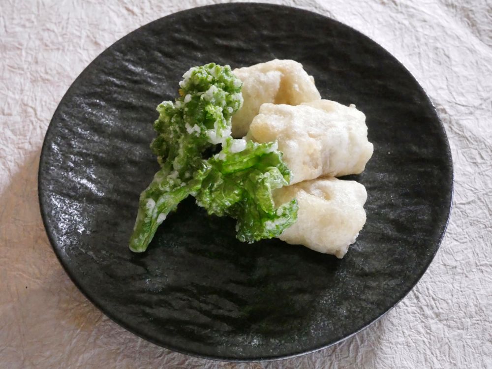 おいしそうに白扇揚げができています さっくりふわふわの衣もおいしそうです。