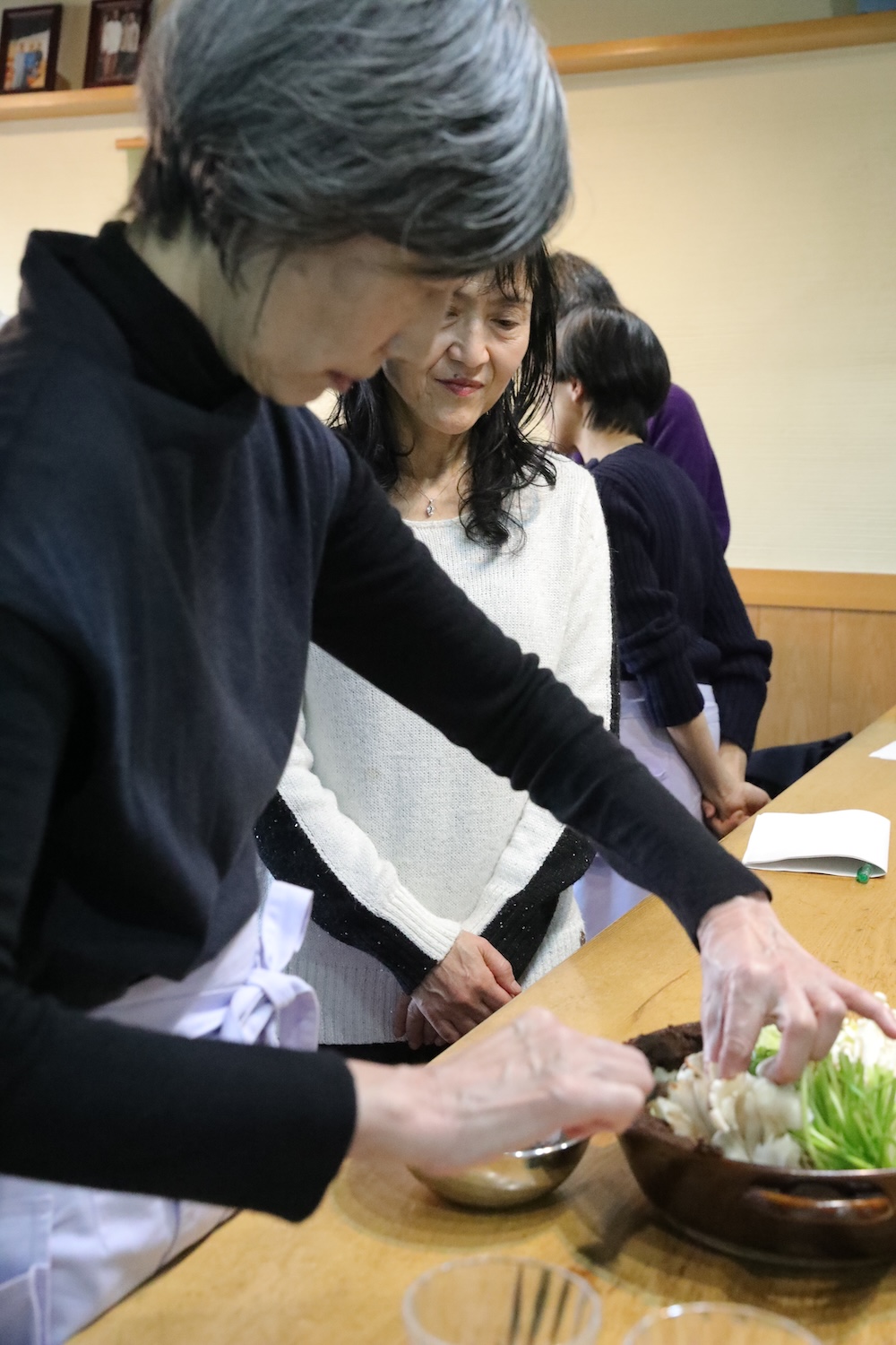 今月の自由人コース6は ネオ節分料理と 郷土料理を学ぶということで牡蠣の土手鍋をお教えしました。 茶懐石の八寸の一部でも在る百合根の料理もありました。