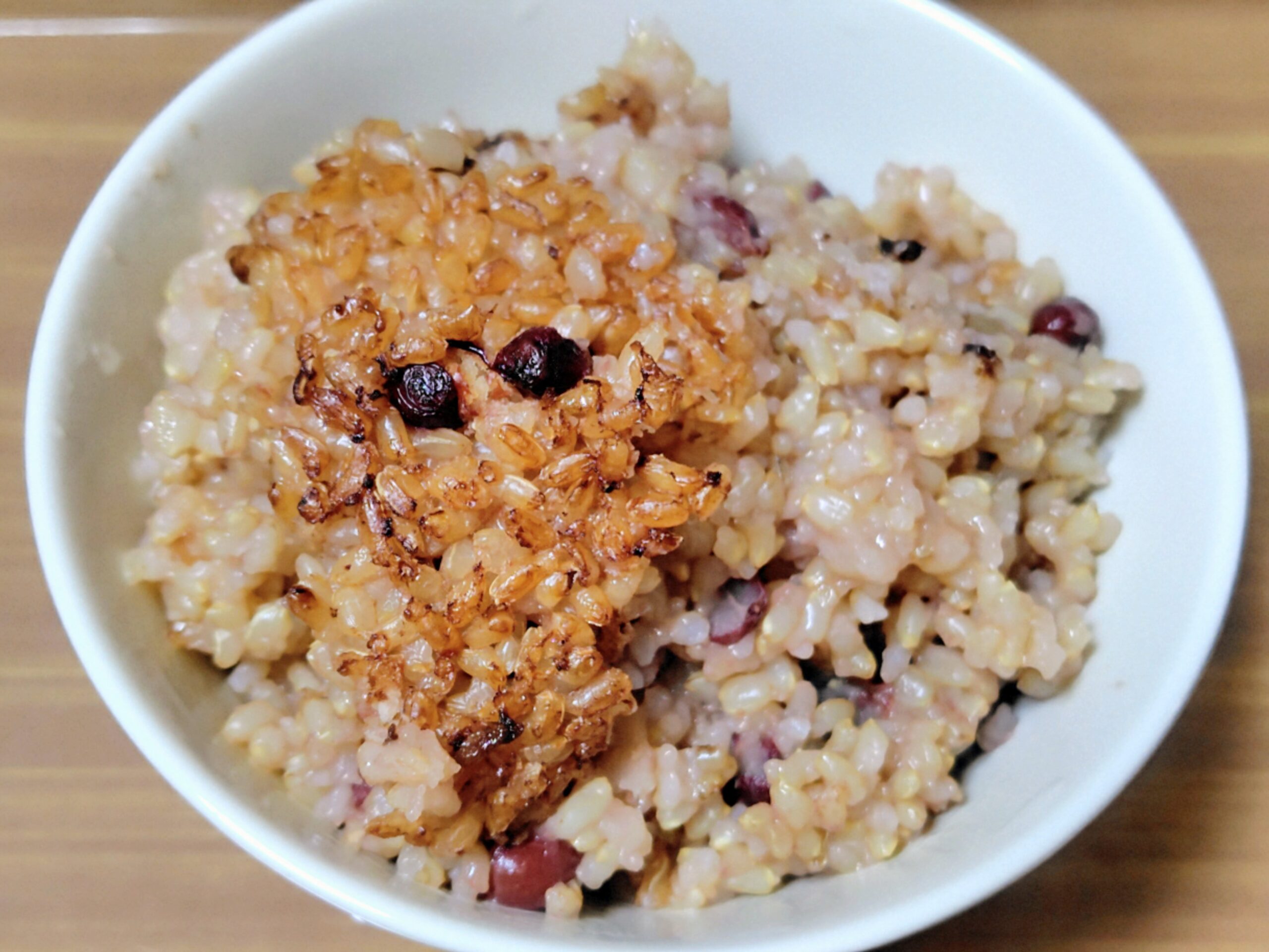 美味しそうに炊けています すこし焦げがキツイのはコンロを移したからでしょう。