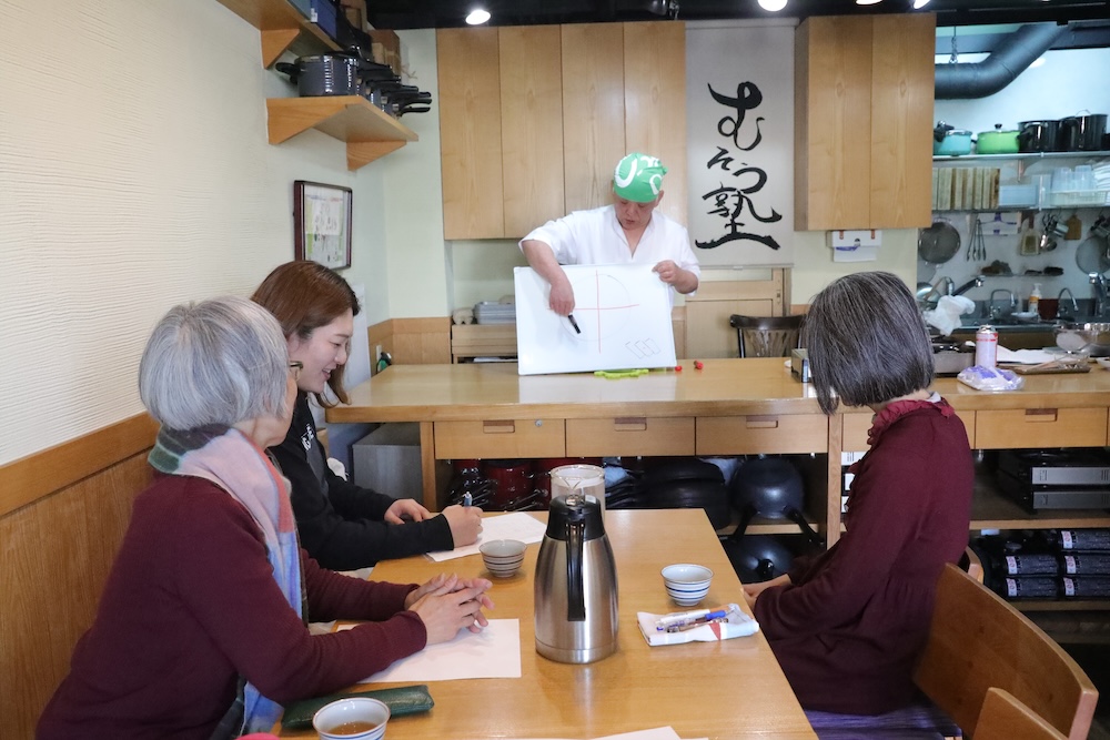 食後は塾長の盛付講義タイムです 大事なポイントをお教えしました