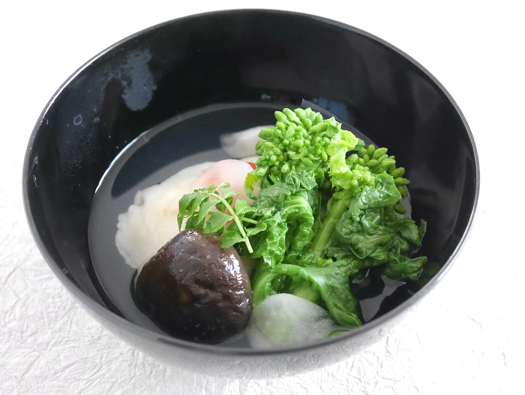 美味しくできています もう少しだけ真蒸の高さを出すと吸い地をもう少しはれますので菜の花の前高状態を改善できるでしょう。