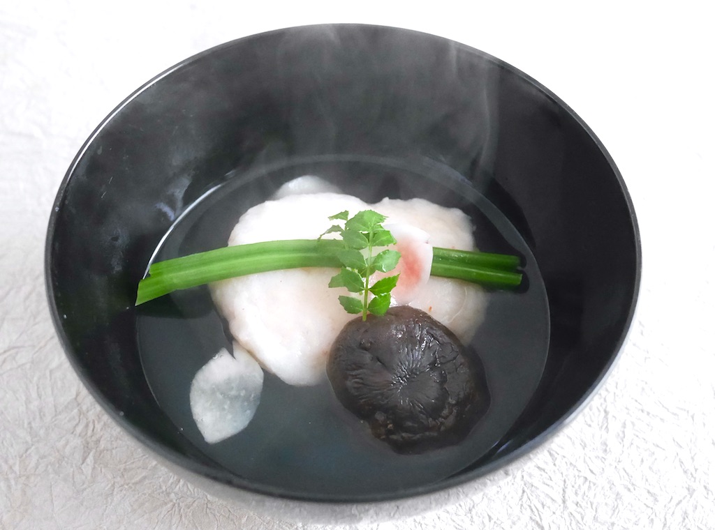 美味しそうにできました 懐石料理の煮物椀をご自宅で作っていただく。