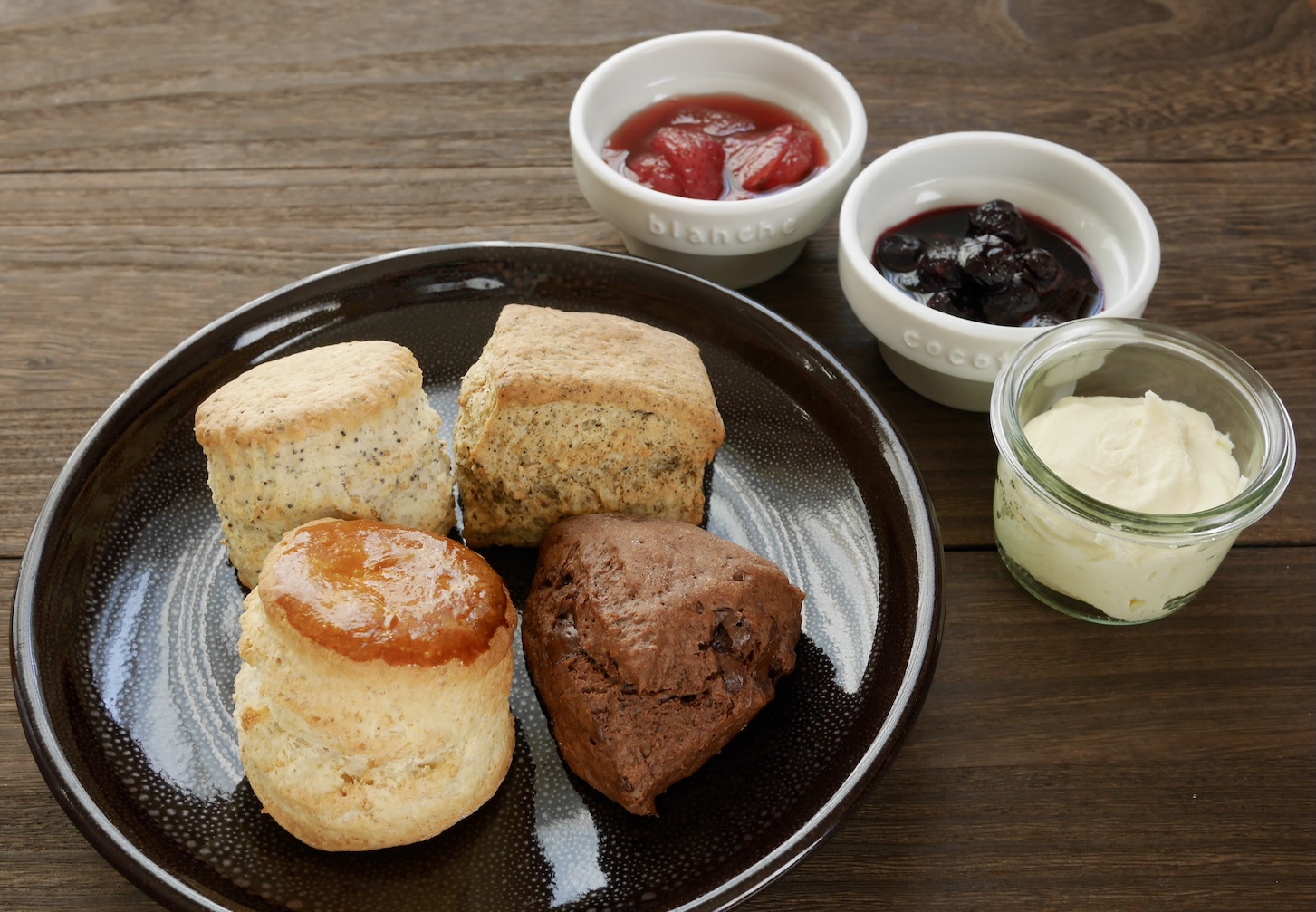 クロテッドクリームもジャムも上手にできています ティータイムをお楽しみください