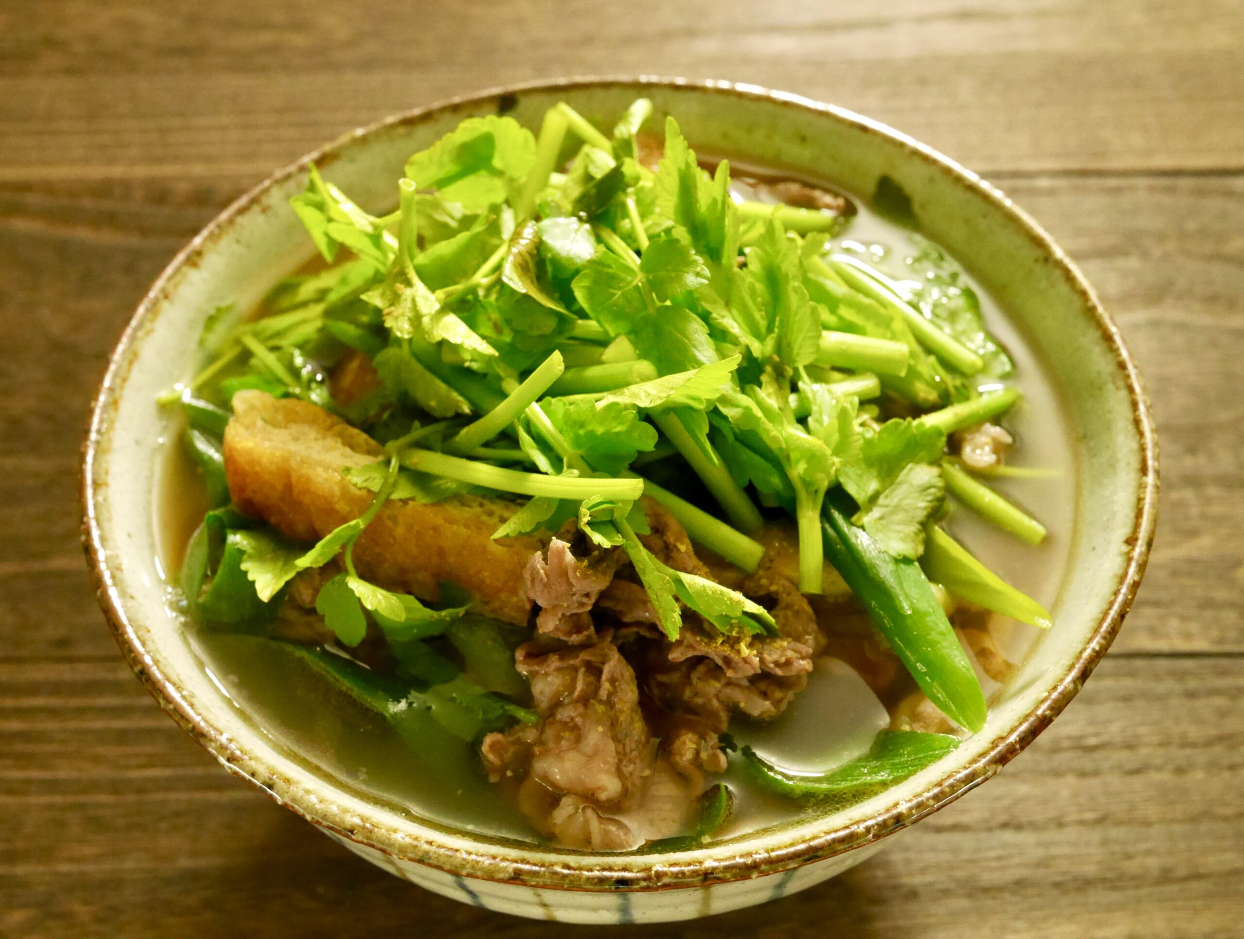 美味しそうにできました 新鮮な芹が主役の蕎麦ですね 御主人様にも喜んでいただけて良かったですねぇ。 丼の中の陰陽をお楽しみください。 合格です