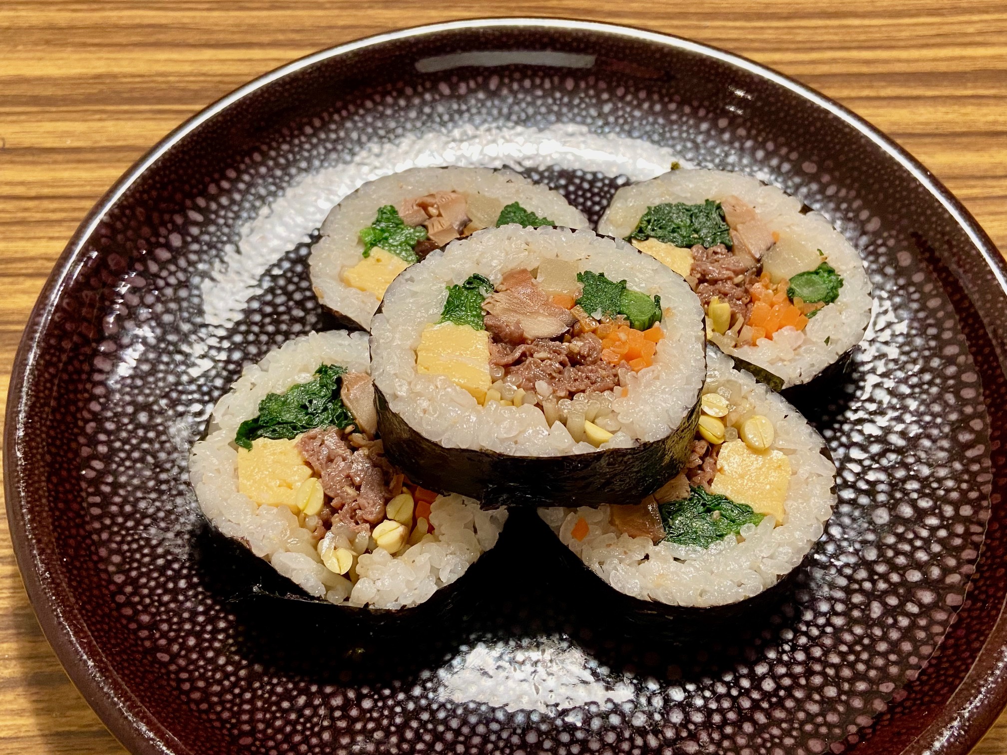 キンパも美味しく巻けています もやしがホワイトドーナツを切りそうでややキケンですので注意しましょう 合格です