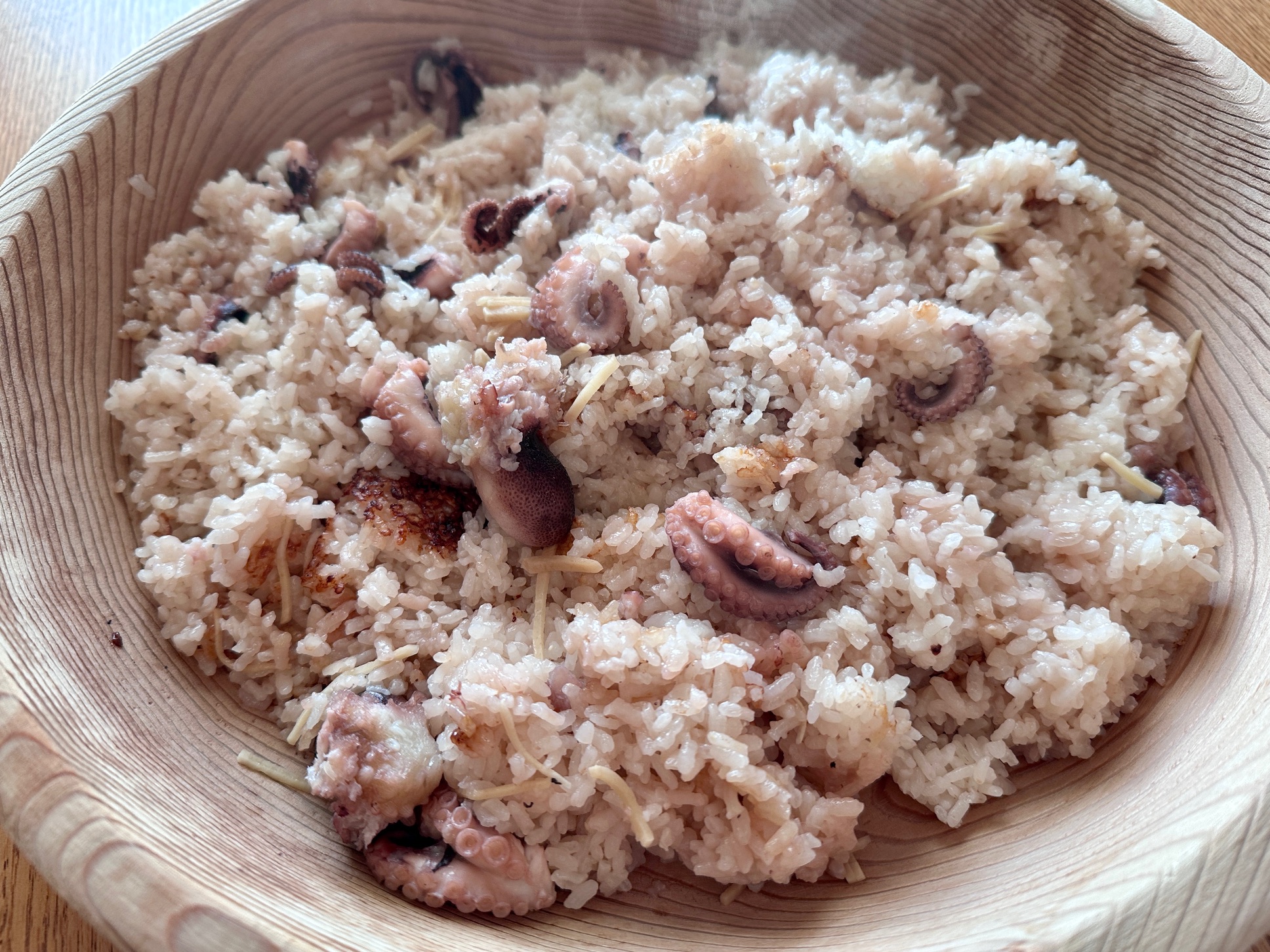 美味しそうに炊けました 飯蛸もブリッと感が残せて上手なできあがりです。