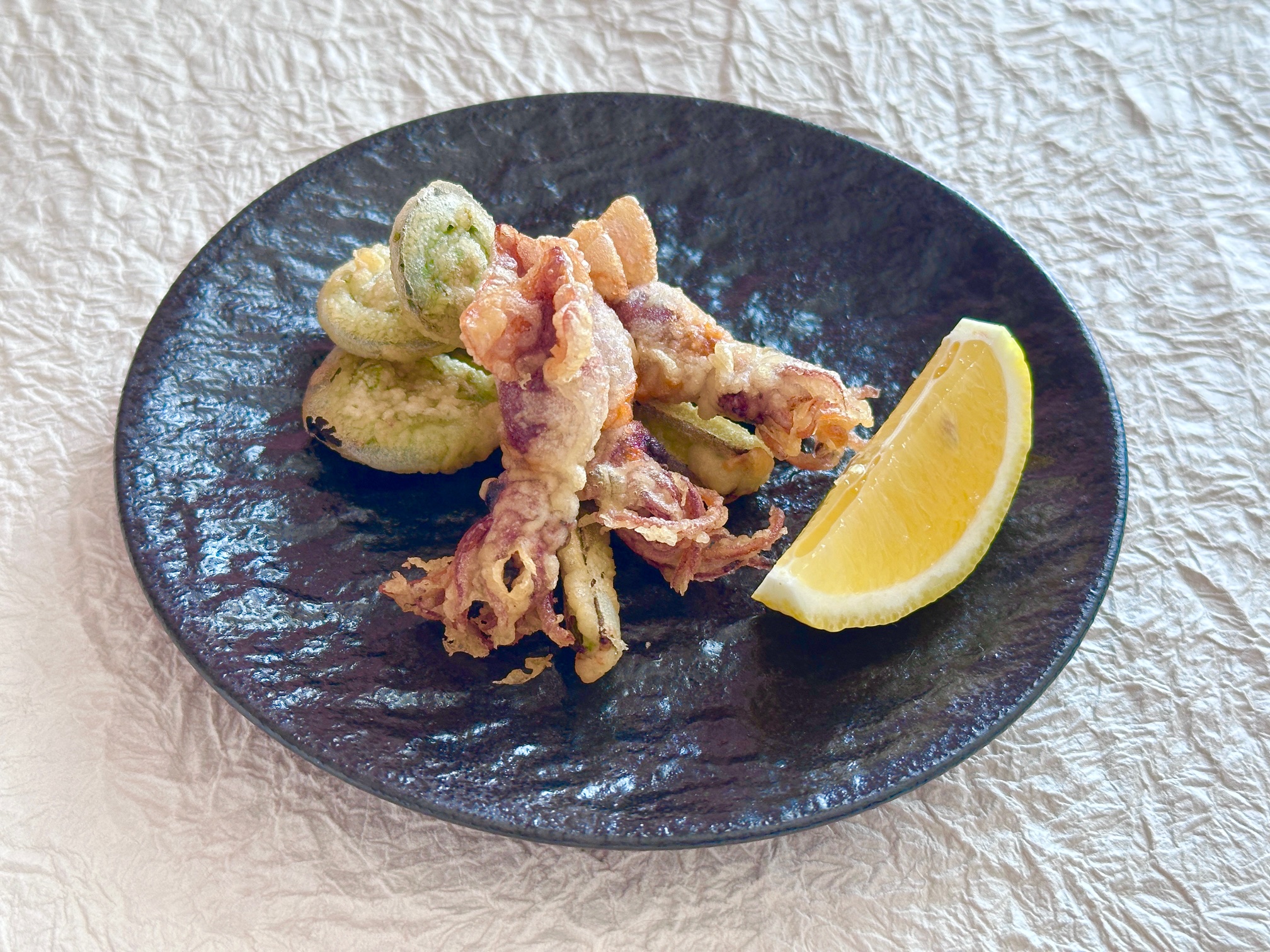 おいしそうに揚がりました すこし揚げ色が付きすぎているのは油温の問題かな。