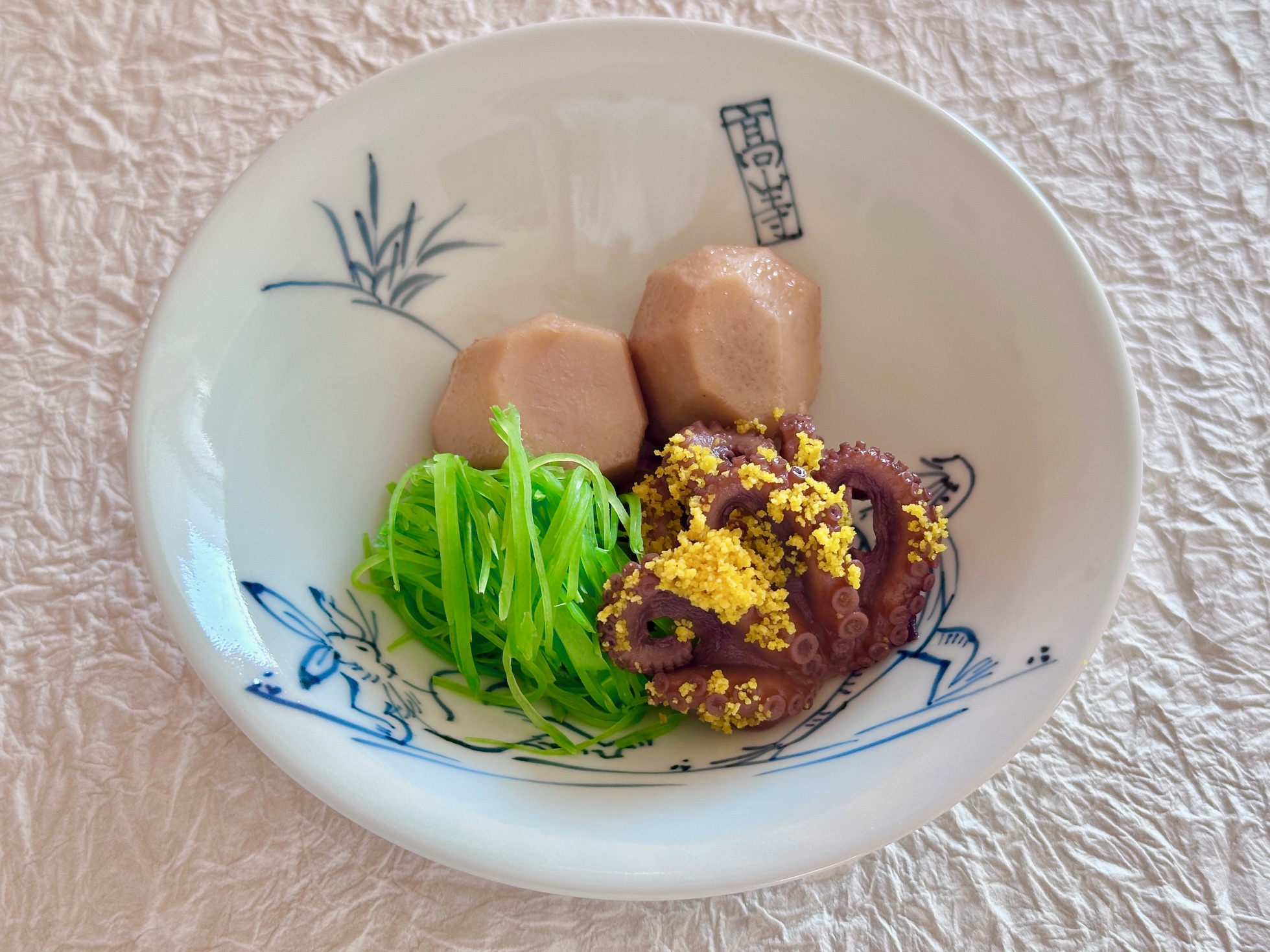 飯蛸の桜煮が美味しそうにできています。 絹さやの線の流れが違うのでやはり先日のOBENTERS™での指導は理解いただけていなかったのがすこし残念です。 この流れでは中高にならないですよね。