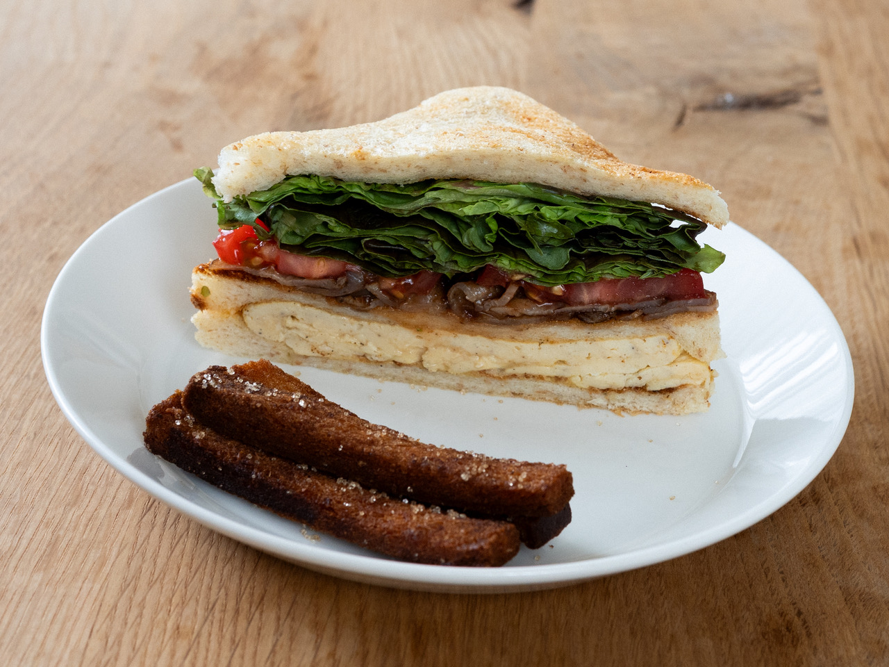 美味しくできました 皿の色ともあいまって トーストが白く感じてしまいましたね。