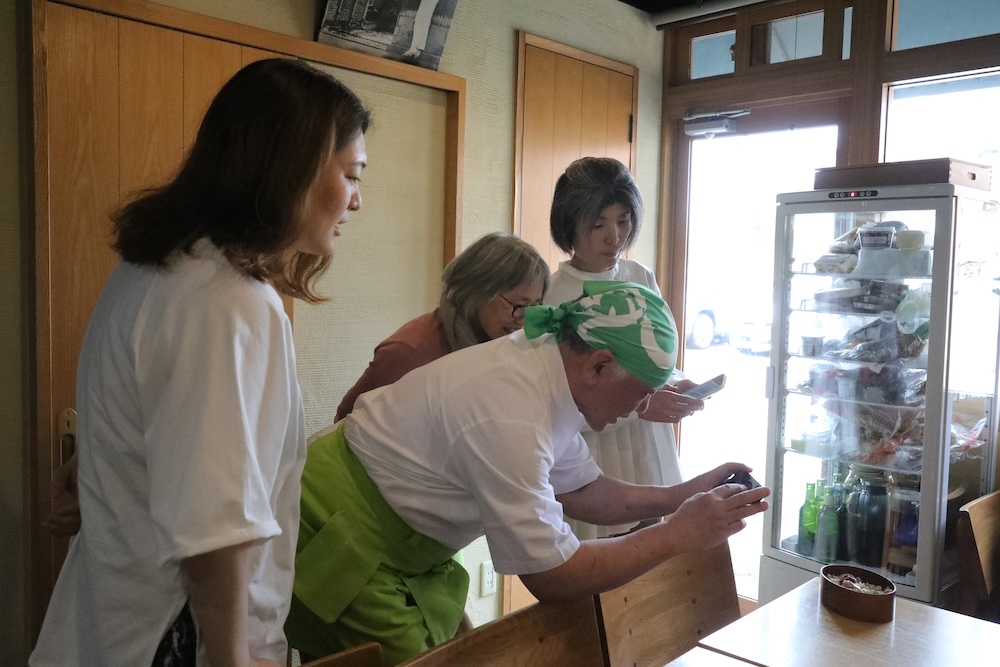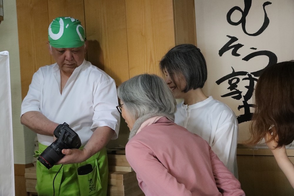 塾長の撮影をのぞくみなさん 料理雑誌の見開きのような写りに驚いておられました