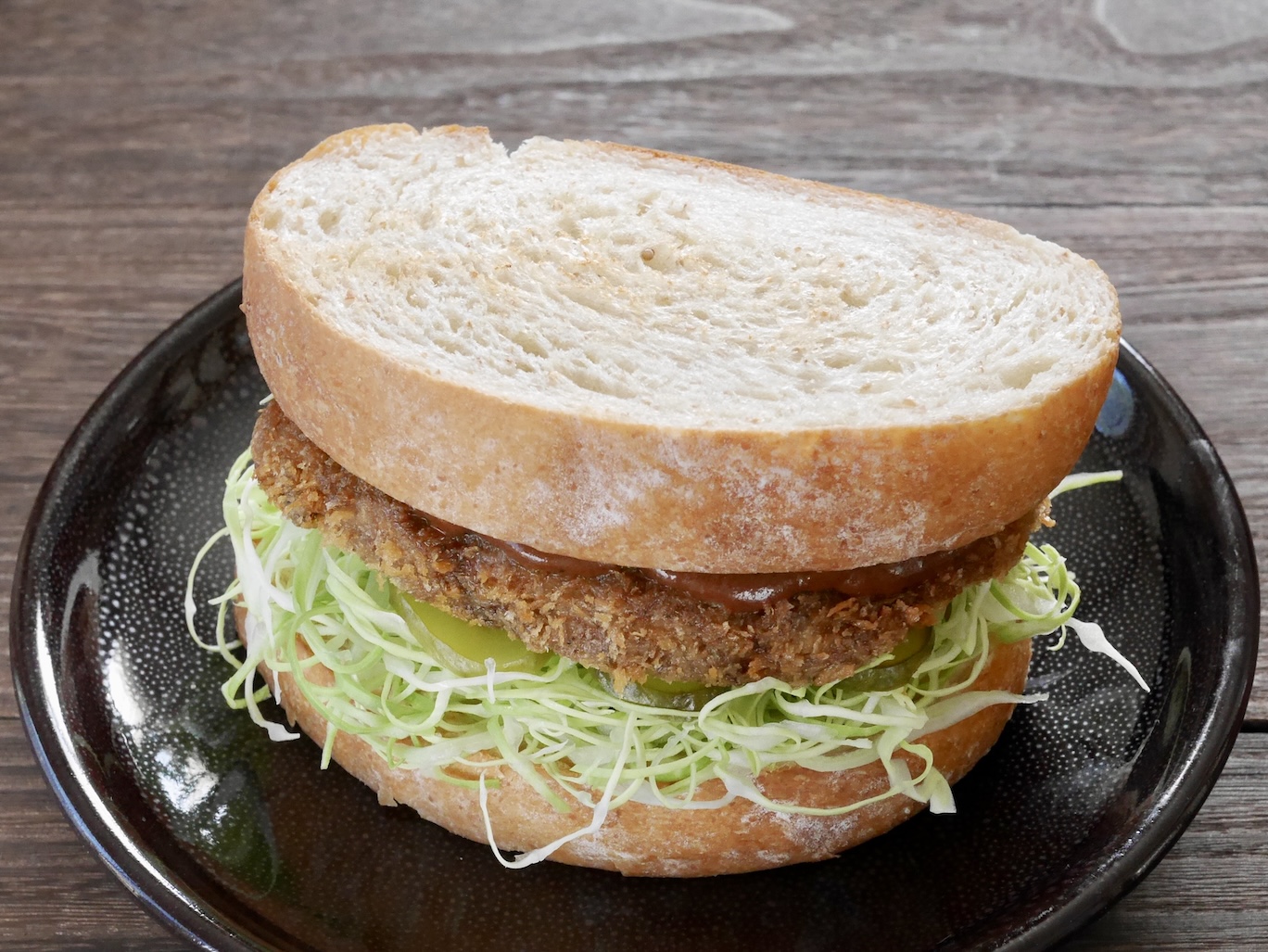 そしてこのビフカツサンドです 完璧ですね。サイズも糸キャベツの細さ長さもパーフェクトです。 ご家族様の舌鼓が聞こえてきそうです。 合格です