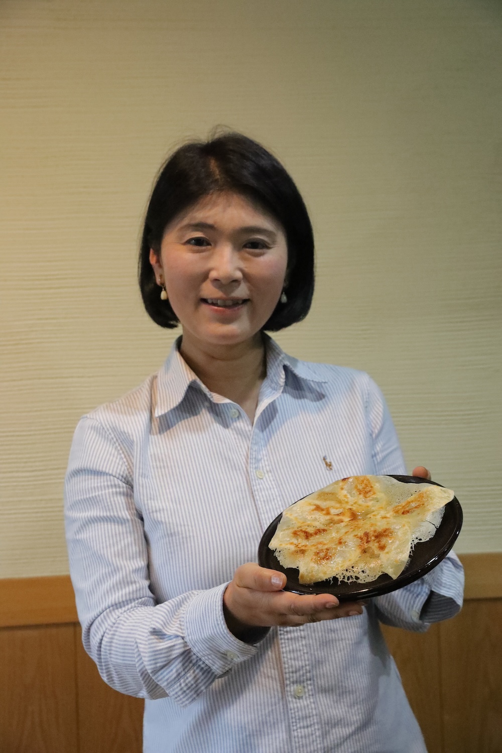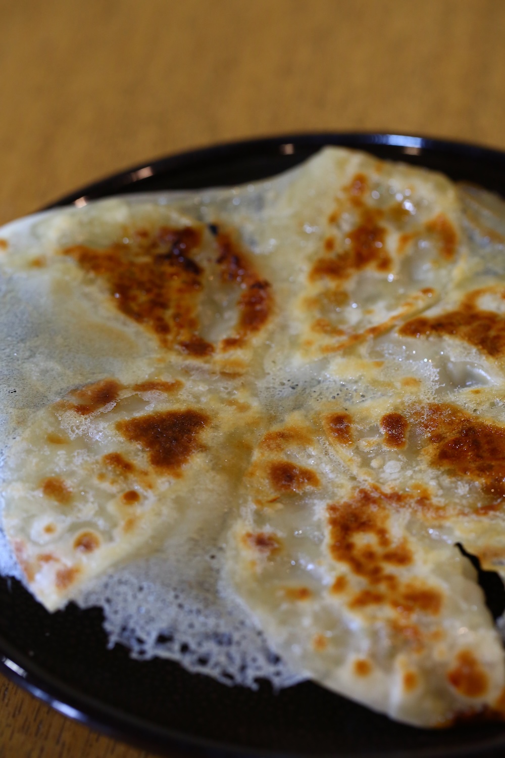 焼けました ウイング付き焼き餃子です